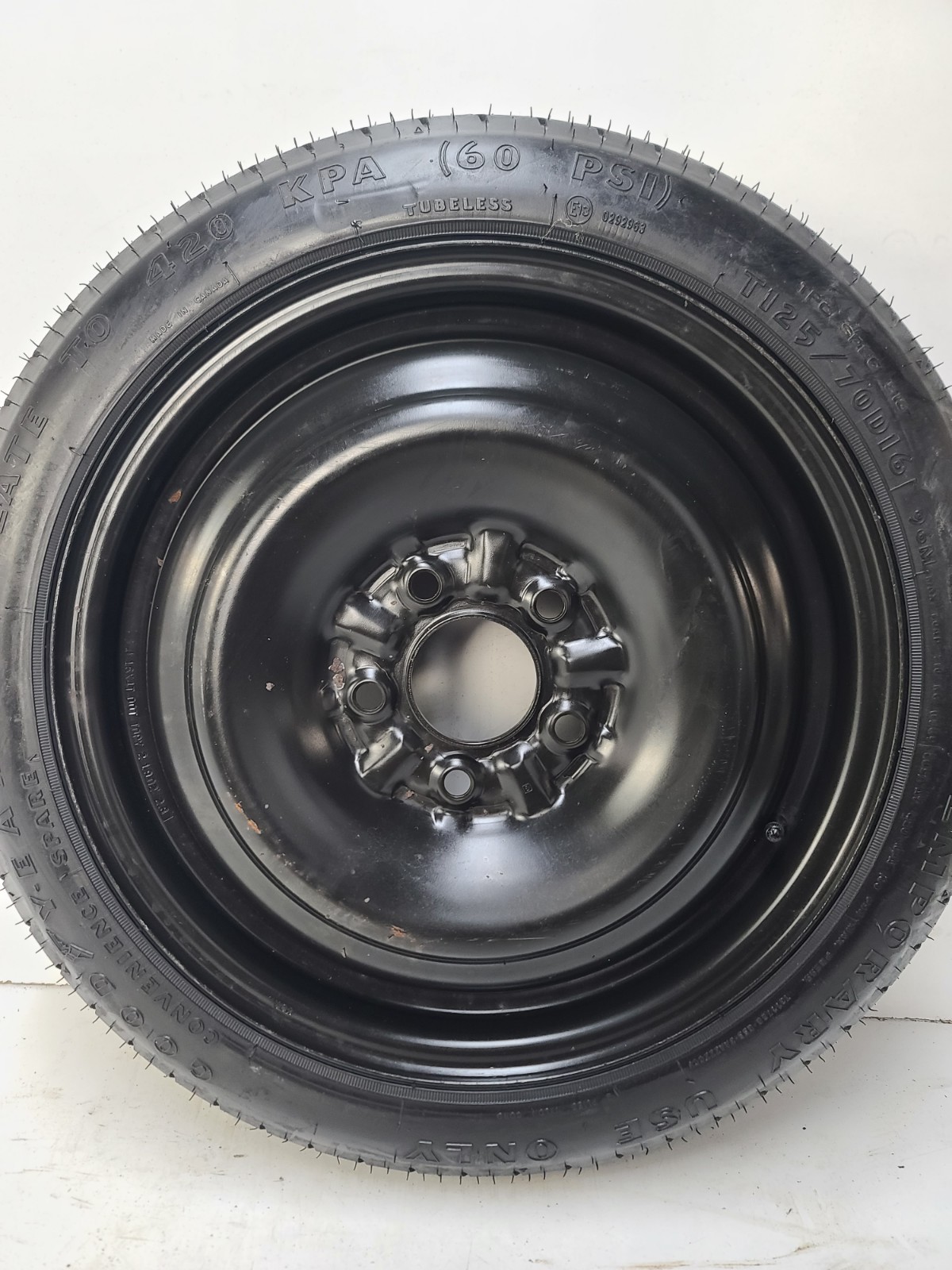 **DESCRIPTION:** **Fits nicely in the trunk of your vehicle in the spare tire compartment.** **WHEEL AND TIRE MOUNTED, READY TO USE** **OUR TIRES ARE READY TO BE USED AS SOON AS THEY ARRIVE** Shipping To Lower 48 States. NOT SHIPPING TO PR, HI OR AK. WE DO NOT SHIP TO P.O. BOXES! DESCRIPTION: **OEM Tire. Fits nicely in the trunk of your vehicle in the spare tire compartment.** ? **WHEEL AND TIRE MOUNTED, READY TO USE** ? OUR TIRES ARE READY TO BE USED AS SOON AS THEY ARRIVE ?THE TIRE DEPICTED IN THE IMAGES IS THE EXACT ITEM YOU WILL RECEIVE. WE DO NOT USE GENERIC PHOTOS FOR MULTIPLE LISTINGS. PLEASE NOTE THAT ALL ITEMS ARE SUBJECT TO A FINAL QUALITY INSPECTION PRIOR TO SHIPPING. IN THE EVENT AN ITEM DOES NOT MEET OUR STANDARDS DURING THIS FINAL CHECK, IT MAY BE SUBSTITUTED WITH AN EQUIVALENT REPLACEMENT WITHOUT PRIOR NOTICE \*\*OUR PRICES REFLECT THE SIZE, WEIGHT, YEAR OF TIRE MANUFACTURE AND CONDITION OF THE TIRE **\*\*OUR PRICES REFLECT THE SIZE, WEIGHT, YEAR OF TIRE MANUFACTURE AND CONDITION OF THE TIRE**