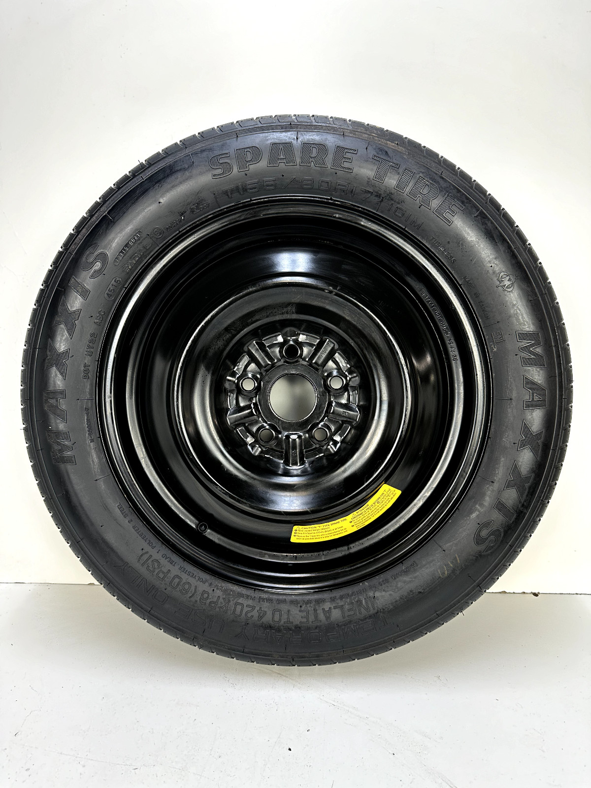 **MINI DONUT SPARE TIRE NOT A FULL-SIZE SPARE COMES MOUNTED WITH THE WHEEL** **FAST AND FREE SHIPPING** **(SORRY WE ARE SHIPPING ONLY TO THE 48 CONTINENTAL USA STATES)** **MAY HAVE FEW SPOTS/STAINS/RUST/SCRATCHES, SEE PICTURES.** **OUR COMPACT SPARES ARE MOUNTED FULL WITH AIR AND READY TO USE** **Please magnify and study all images before purchase.** **Please verify tire size and compatibility before purchase.** **Actual picture of the item for sale. You get everything shown in the picture.**
