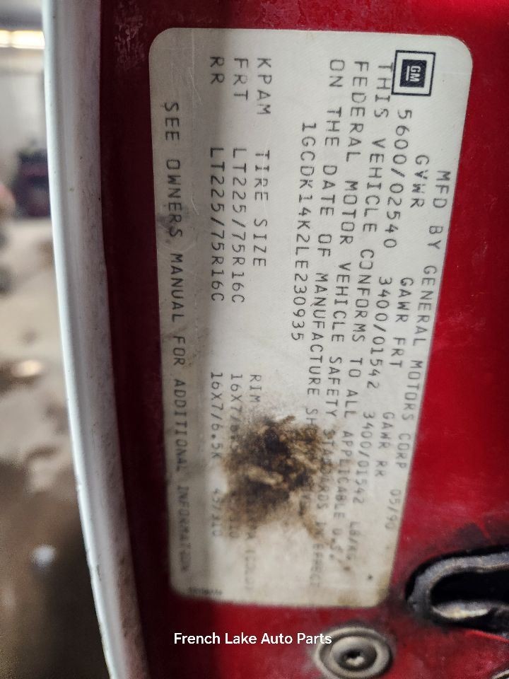 - VIN #: 1GCDK14K2LE230935