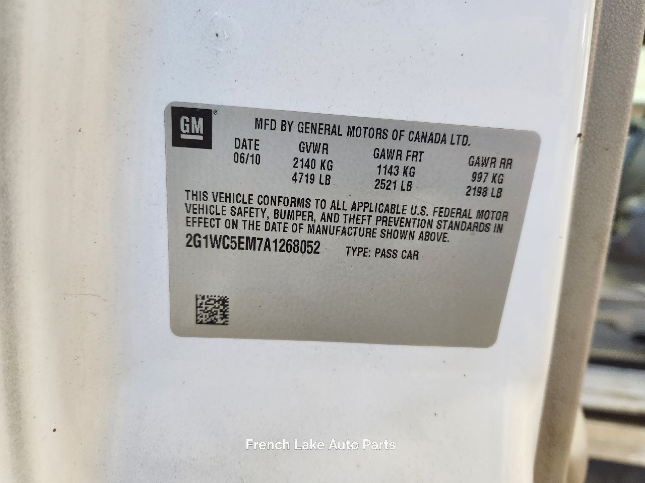 - Donor VIN: 2G1WC5EM7A1268052