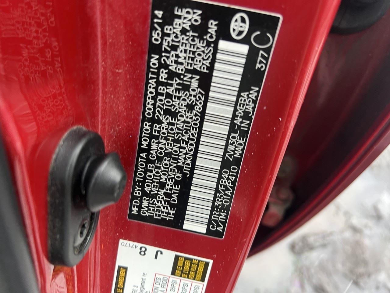 - VIN #: JTDKN3DU2E0378627