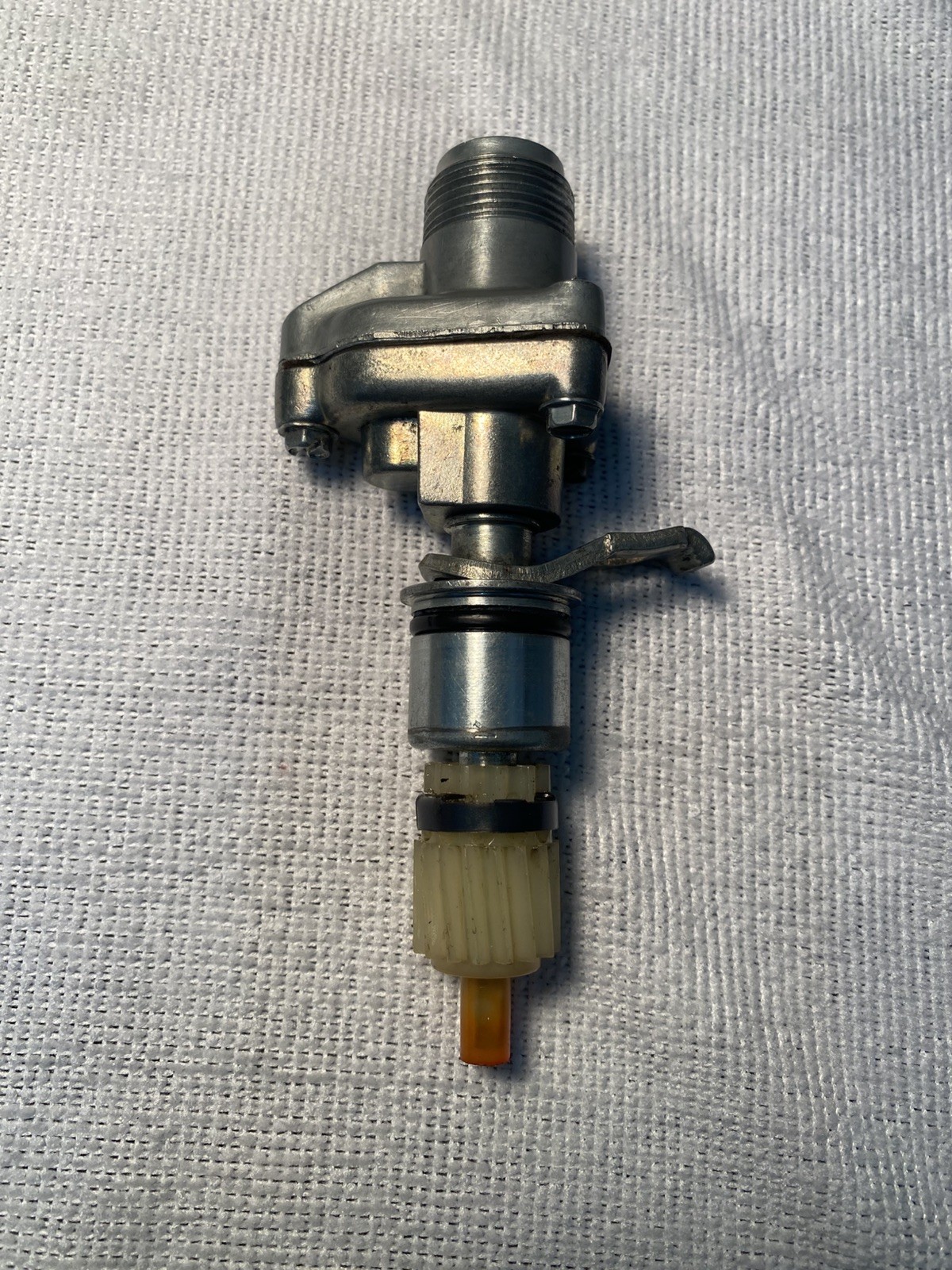 Selling one used genuine working OEM Made in USA .8797 ratio speedometer adapter drive. OEM universal fit replacement part for Ford vehicles with Toploader manual transmission and C6 automatic transmission. Complete with NOS-pinion gear and metal pinion gear retaining clip. Correct part for all Ford Mustangs Shelbys Torino and Mercury Cougars with manual or C6 automatic transmissions and low differential gear ratios made from 1964 to 1973. Also the factory correct part for Ford commercial trucks with C6 automatic transmissions made from 1974 to 1982 (In 1983 the original part was phased out on Ford commercial trucks and replaced with a hall effect sender to run a speedometer with an electrically driven pointer needle). These reducers continued to be produced as replacement parts until 1989, when all the original tooling was discarded after the USA Stewart Warner factory closed. CBI made a slightly different version of this Ford part from 1989 to around 1995. A hard to find part. If your tires have been replaced with aftermarket tires having a different circumference from stock Ford size tires, you will require a different ratio to make your speedometer accurate. The reducer has been confirmed to have a 12% reduction at the output shaft (There are approximately 8.8 rotations of the output shaft when the input shaft is rotated 10 times). Heavy duty housing with threaded-in fittings, not like the light duty pot metal factory installed units with pressed-in fittings that fall out over time and allow the gears to fall out. Standard Ford transmission probe and 16 tooth plastic pinion gear are included. The drive can be used with any other OEM Ford plastic pinion gears of your choice. Complete with pinion gear retaining clip. The pictures of the instruction manual are for reference only. The instruction manual is not included. An out of production part. Ford Mustang and Shelby Years: 1964 1/2 (64 1/2), 1965 (65), 1966 (66), 1967 (67), 1968 (68), 1969 (69), 1970 (70), 1971 (71), 1972 (72), 1973 (73) Above years shown are used for searches and are not application listings. Mercury Cougar Years: 1967 (67), 1968 (68), 1969 (69), 1970 (70), 1971 (71), 1972 (72), 1973 (73) Above years shown are used for searches and are not application listings. Ford Falcon and Ranchero Years: 1970 (70) Above years shown are used for searches and are not application listings. Ford Fairlane and Ranchero Years: 1964 (64), 1965 (65), 1966 (66), 1967 (67), 1968 (68), 1969 (69), 1970 (70) Above years shown are used for searches and are not application listings. Ford Torino and Ranchero Years: 1968 (68), 1969 (69), 1970 (70), 1971 (71)