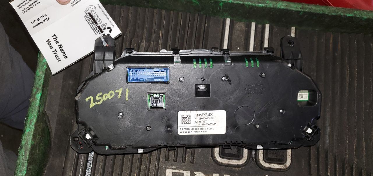 Description USED ITEM - MAY HAVE LIGHT SCRATCHES OR BLEMISHES FROM BEING A USED ITEM. Donor Vehicle VIN: KL4CJCSB0HB118182 Model: ENCORE Year: 2017 Mileage: 111000 (0 = not available or unknown) Stock Number: 250071 Store Number: 1 Part Detail Part Grade: A Part Category: U Part Placement: Notes: 182026 This part will fit these makes and models with these options ENCORE 17 (cluster), MPH (opt UMN), w/o automatic engine stop and start ENCORE 18 MPH (opt UMN), w/o automatic engine stop and start WARRANTY / GUARANTEE Most parts we sell come with a **90 day money back guarantee** unless otherwise stated.The 30 day period starts when you take possession of the part. No labor warranty is provided. Engines and transmissions have a 6 month part warrantyIn the event a part sold with a warranty fails to operate within the warranty period we will replace the part(s) with a functionally equivalent part (if available) or refund for the parts purchase price, at our option. SHIPPING NOTESABOUT USHELP Garry's Auto Recycling ships to US addresses within the 48 states only via UPS Ground or USPS First Class. # **_FREIGHT:_ITEMS WITH FREE FREIGHT SHIPPING (BIG ITEMS - like engines/transmissions/doors/hoods) APPLIES TO BUSINESS ADDRESS DELIVERY THAT CAN TAKE AN 18-WHEELER. RESIDENTIAL SHIPMENT WILL BE AT EXTRA COST TO THE BUYER OF THE DIFFERENCE IN COST OR SHIPPED TO THE CLOSEST FREIGHT TERMINAL FOR CUSTOMER PICK UP.** No Alaska, Hawaii, Puerto Rico, APO, FPO or PO Box please.Pick up at our facilities is available. Please message us prior to your purchase to arrange pick up. Items will be shipped within 1-2 days of purchase. Please allow 3-10 days for delivery. Most areas in the US are within 3-5 days. No expedited/overnight shipping is available. If an item arrives damaged, please contact us via Message/Email/Phone within 24 hours for instructions. Please include any photos you may have taken of the damage and please note if there was damage on the shipping package when received. If you have a question about a part please contact us **BEFORE** purchasing. Our main contact method is by Messages. We try to answer all messages within 24 hours. Near the buy now button under our user name there is a contact seller link. **ALL PARTS ARE USED UNLESS OTHERWISE STATED** \- Please remember these are used parts so they will have normal wear/tear on them like light scratches or blemishes. **Parts Grading.** A standard code system is used to communicate the condition and quality of a part between automotive recyclers, automotive repair shops, and insurers. Knowing how these codes are used will help you understand whether the part meets your expectations before you buy it and what you can expect from the part when you receive it. **A Grade**\- The highest quality part. It is of low miles and/or exceptional condition for its age.**B Grade**\- The second level quality part. It is of average miles and normal condition for its age.**C Grade**\- The third level quality part. It has high miles and/or light damage.**No Grade**\- A part that has not yet been graded.