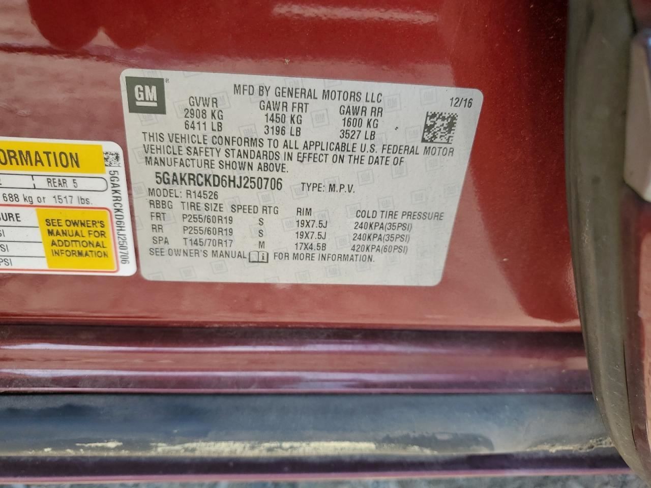 - VIN #: 5GAKRCKD6HJ250706