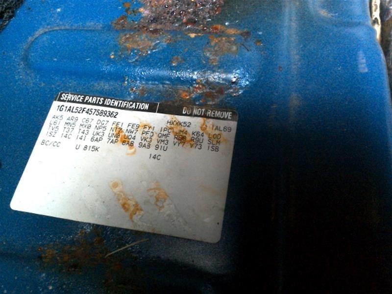 - Donor VIN: 1G1AL52F457589362