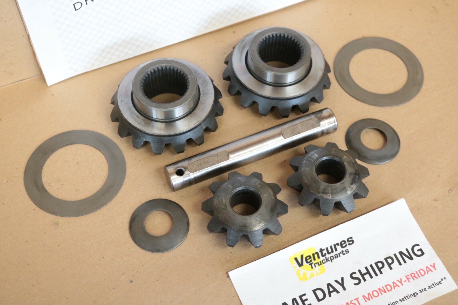 DANA 60 SPIDER AND SIDE GEAR KIT FOR OPEN CARRIERS. Includes all parts shown in photo. ORIGINAL OEM DANA SPICER PARTS USED IN FORD CHEVY AND DODGE DANA 60 FRONT ONE TON AXLES. ALSO CAN BE USED IN 35 SPLINE AXLE SHAFT UPGRADES. Questions? Feel free to ask us! We usually respond within 24 hours. All non-paying bidders will be reported! \\_\\_\\_\_\_\_\_\_\_\_\_\_\_\_\_\_\_\_\_\_\_\_\_\_\_ SHIPPING INFORMATION We ship: - UPS - USPS - Various Carriers for truck freight shipments We offer same-day shipping on most items we sell if order is paid for by 3:00 p.m. mountain standard time Monday through Friday. Same-day shipping does not apply on holidays or when vacation settings are active.