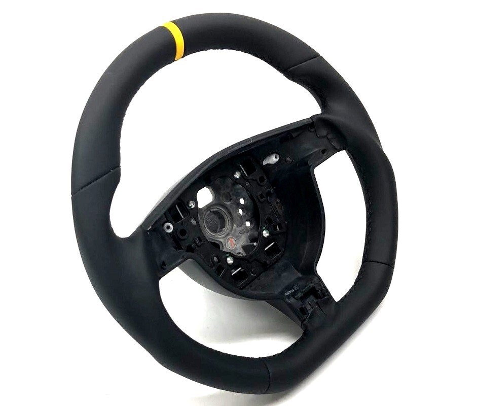 **Custom steering wheel** **for: Porsche 997.1 Carrera /S / 4S / Turbo; 987.1 Boxster and** **Cayman Models** **Core exchange required for this item** **Product features:** Sportive flat bottom shape design Extra thick side grips Black NAPA leather wrap: Smooth top and flat bottom, perforated sides (options: All smooth NAPA wrap, NAPA with alcantara two-tone wrap for $80 more) Option: color ring on top and color stitching, Showing Yellow in this item Product Status: Build to order, we will make this steering wheel once order confirmed Up for sale is a Black NAPA Porsche 997 (911) C2 C4 Turbo, 987 Boxster /S and Cayman Sport type 3 spokes leather steering wheel. New DCTMS sport molding to make the steering wheel thicker and ergonomic to grip. Nicely combined smooth and perforated leather for sporty appearance. The OEM Porsche steering wheel is just plain and too thin. This is an excellent upgrade for both styling and handling. **This** **steering wheel will only fit Porsche 997/987 models use circle airbags** **(sport type steering wheels). if you have standard type (triangle airbags)** **steering wheel check our other items or contact us.** Contact us for questions or more detail, If you are looking for a Porsche steering wheel, we will have (make) it for you! We also have this steering wheel in Stone Gray, Sand Beige, Sea blue, Cocoa and Natural Brown leather color. **NOTE: Core exchange** **required. Please READ the note below** **Car Models fit:** **Porsche 2005~2009 997.1 911 Carrera 987.1 Boxster, Cayman models with circle shape airbag (sport type 997 MK1 )** **Product Status:** **BUILD TO ORDER** **IMPORTANT NOTES:** 1) Installation: This is a steering wheel conversion built on OEM steering wheel core, the fitment will be perfect like stock part. Professional installation is highly recommended. \\*\\* There is no airbag, no control button included in this sale\*\* You will need your original airbag to install this steering wheel. NO AIRBAG included and professional installation is always recommended. (2) **This item requires “Core Exchange”** which means buyer needs to send the OEM steering wheel back to us after receive and install our new steering wheel. $349 Core deposit may apply before we ship the package. (3) Due to our wholesale and retail store activities, our inventory varies everyday so the leadtime to deliver this steering wheel varies (may up to 6 weeks if we need to buy the OEM core and make it),PLEASE CHECK WITH US about the item availability!! (4) NO AIRBAG, NO control buttons NO back cover INCLUDED, customer needs to transfer the original airbag and all necessary parts from the original steering wheel to our custom steering wheel to complete the installation. Please make sure steering wheel will fit your car before placing the order. ABOUT US: DCT MOTORSPORTS provides BEST QUALITY custom steering wheels and interior accessories for Porsche, Ferrari, Lamborghini, Mercedes Benz, BMW, Audi, Aston Martin, Maserati, McLaren, Lexus and Nissan GTR Our product and service vary from simple leather re-finish up to re-shape the contour molding with carbon fiber conversion. There is no design limitation from your preference and creativity, if you don't see a steering wheel you like from our listings, contact us and we will make one for you. We have more than 400 OEM steering wheels as our core inventory ready to make a new wheel for most customers without taking the original steering wheel and immobilize the car. Zero down time when customers waiting the steering wheels to be done. We have our own production specialized in steering wheel conversion and auto interior restoration for more than 23 years. We stock OEM equivalent or even superior leather with more than 80 textures and colors to guarantee the leather wrap meet or exceed OEM standard, we also have full color selection for Porsche leathers since we purchased material from the same vendor VAG used. Most of our custom steering wheels are build to order and had been done by skillful technicians with attention to detail and true craftsmanship. DCTMS is also the exclusive distributor for 3 other manufacturers making OEM replacement steering wheels. Our variety products cover models from Mercedes, Porsche, BMW, Audi, Lexus, Nissan and Subaru. We strive to provide right style design and high quality products with best value to the market. We are available to answer any of your questions about our products and service. Monday to Friday from 9am to 6pm California Time. Our phone number is 1-408-8024500 For Bay area local customers, we have a shop in Santa Clara, California. Feel free to stop by and check our demo cars, display products, material samples before order your right steering wheel. DCT MOTOR SPORTS \| 500 Laurelwood Rd. Ste 16. 7.25% SALES TAX WILL BE APPLIED TO CALIFORNIA RESIDENTS SHIPPING: We ship throughout US lower 48 states by FedEx ground or USPS Priority service with standard rate. Expedited shipping can be arranged upon request. WE SHIP WORLDWIDE. International customers please confirm service cost and availability before place orders. Information needed to prepare a shipment: NAME/DETAIL ADDRESS/TEL/E-MAIL. Put a note with special instruction if needed when submit Paypal payment. Item preparation and production lead time varies depending on our inventory and production capacity. We will help ship every item ASAP. **100% CUSTOMER SATISFACTION IS** **OUR GOAL** Customers have 7 days after delivery date to return if the item does not meet expectations. Buyer is responsible to return the item in unused, uninstalled and in the original packaging condition. 30% re-stock fee may apply for items with custom features. Customer pays all return shipping. We will exchange items damaged during shipping or defective from the factory. Please inspect your item immediately upon receiving. Contact us right away and we will assist you with the replacement. All claims must provide pictures of the damaged or defective item 
