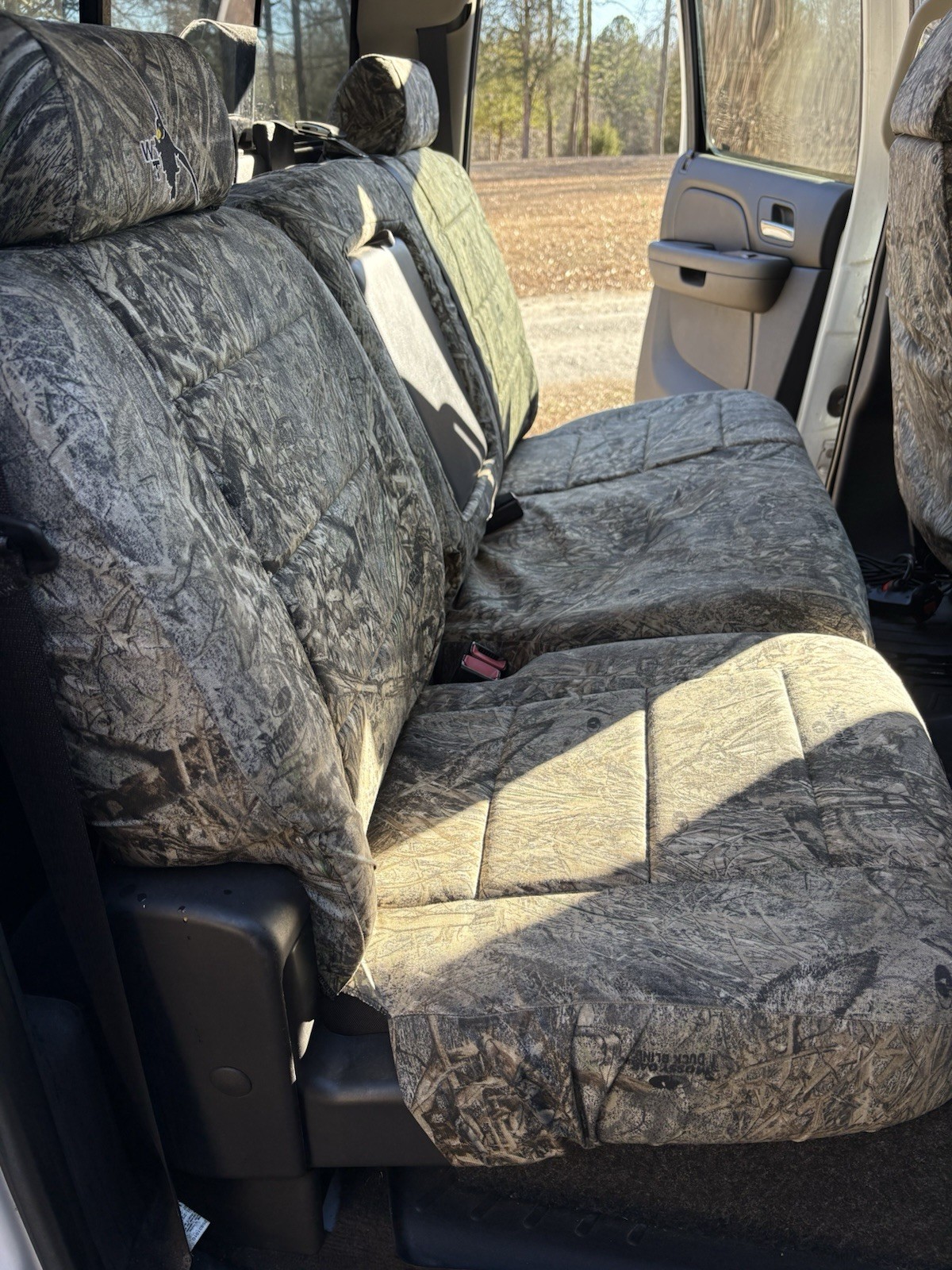 Sportsman Camo Cordura Seat Covers Mossy Oak Duck Blind Includes: Front and Rear Seats Console Covers Head Rests Front and Rear Rear Fold Down Arm Rest Fits 2007.5 Chevrolet 2500 HD Crew Cab LTZ Model Duramax Diesel