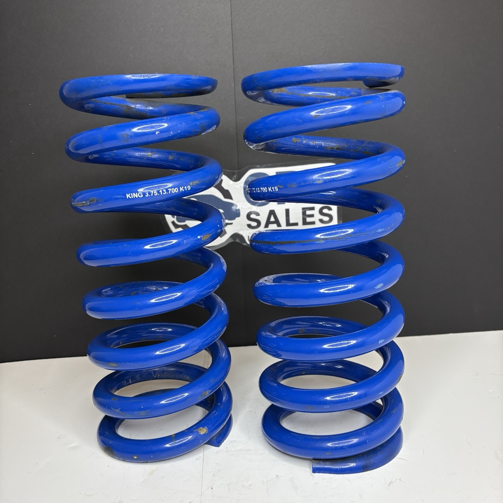 The product is a set of used 3.75'' coil springs with a load capacity of 700 lb, and 13" tall, manufactured by King. This part is used and in good condition with minor cosmetic blemishes.