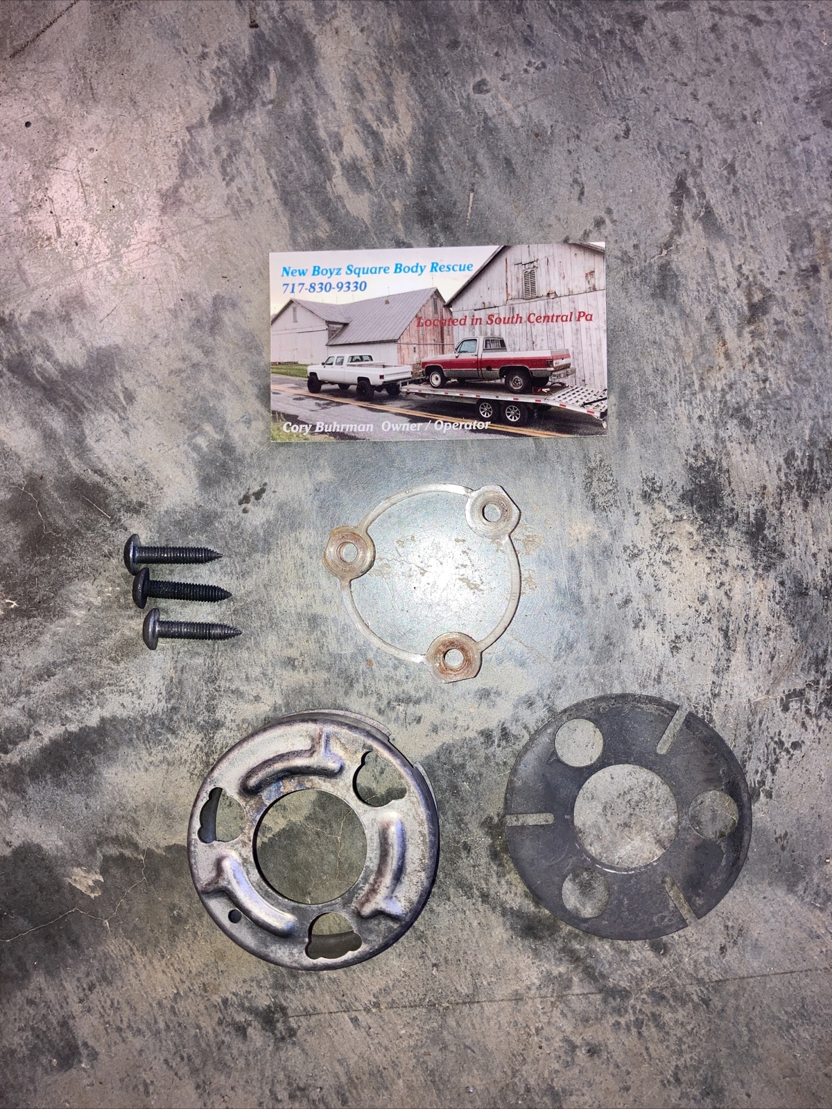 1973-1991 Squarebody Horn Button Retainer. Item pictured may not be item sold. Sold with contents as pictured. Comes with hardware and plastic ring.