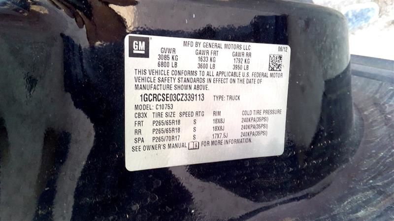 - VIN #: 1GCRCSE03CZ339113