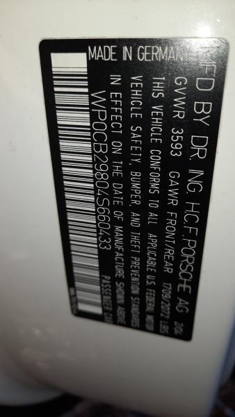 - VIN #: WP0CB29804S660433