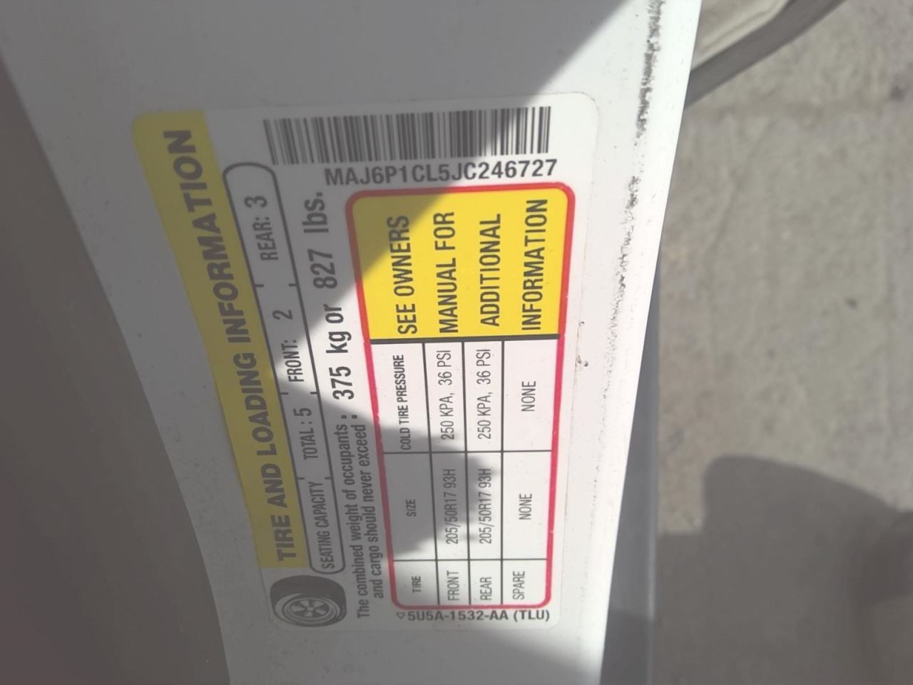 - VIN #: MAJ6P1CL5JC246727
