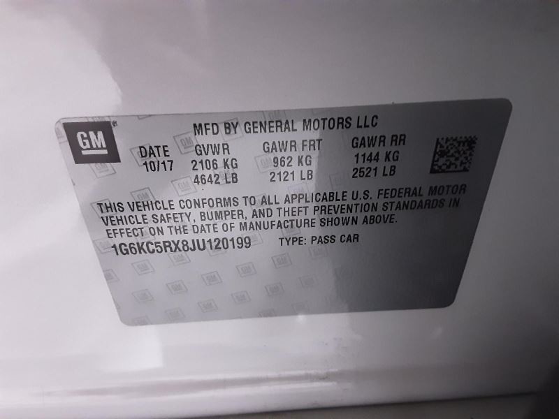 - VIN #: 1G6KC5RX8JU120199