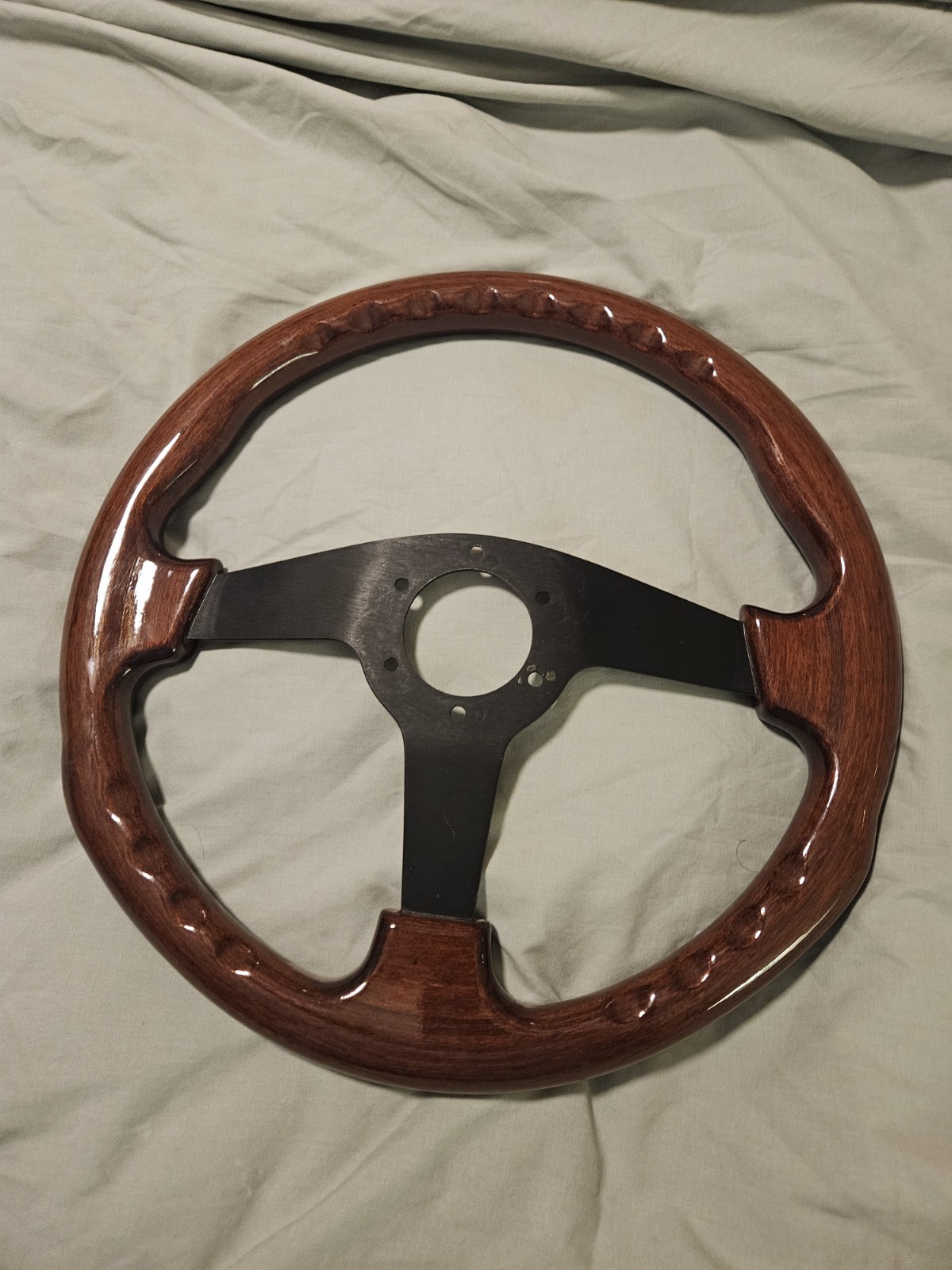 Steering Wheel Mahogany Wood with Black Finish - Nova - VG Condition Momo Style