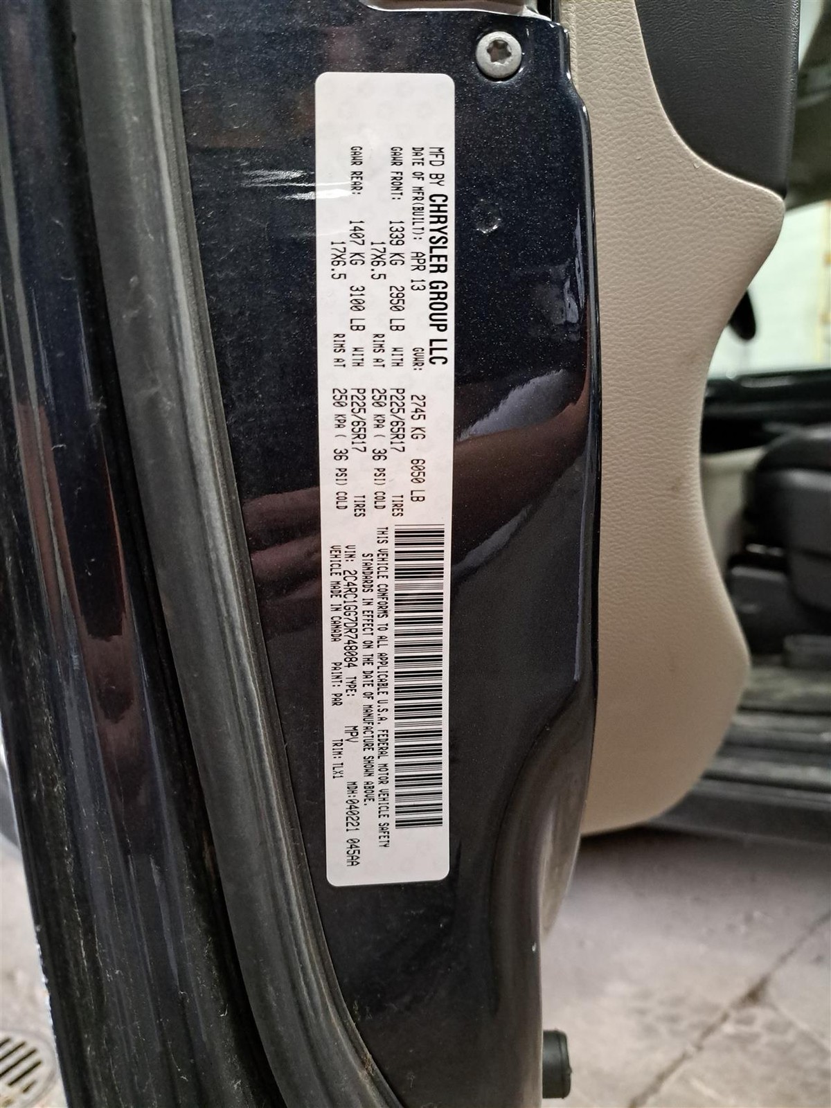 - VIN #: 2C4RC1GG7DR748084