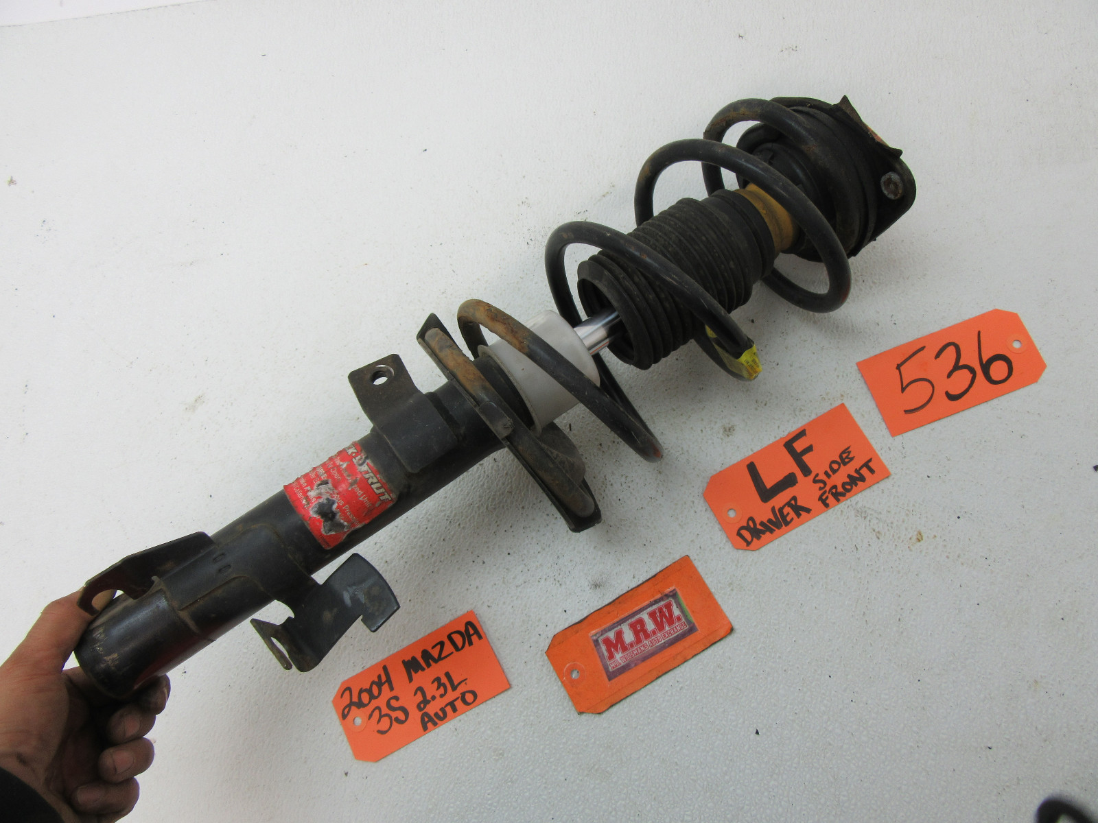 **YOU ARE LOOKING AT ONE USED LEFT (DRIVER) FRONT STRUT.** **IT IS OUT OF A 2004 MAZDA 3 WITH A 2.3L ENGINE & AUTO TRANSMISSION, COLOR CODE 16W, BLACK MICA.** ****************************************IT FITS:**************************************** ****************************************MAZDA 3 04 Front; FITS WITH 17" wheel, WITH AUTO TRANSMISSION, L.**************************************** IT IS USED AND IN GOOD CONDITION. **IF YOU HAVE ANY QUESTIONS PLEASE ASK PRIOR TO BUYING. ALL SALES ARE FINAL. WE SELL EVERYTHING AS-IS, NO RETURNS. LOOK FOR MORE GREAT ITEMS IN OUR STORE. THANK YOU FOR YOUR BUSINESS! The free listing tool. List your items fast and easy and manage your active items.