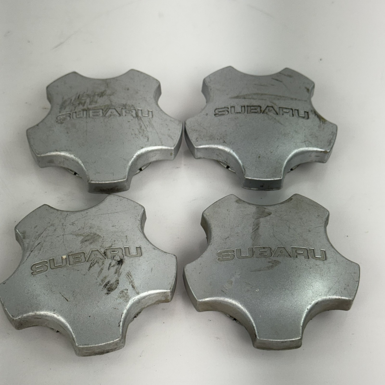 Subaru OEM Wheel Center Caps Set of 4 Silver 28811AC020 1997 1998 Made in USA