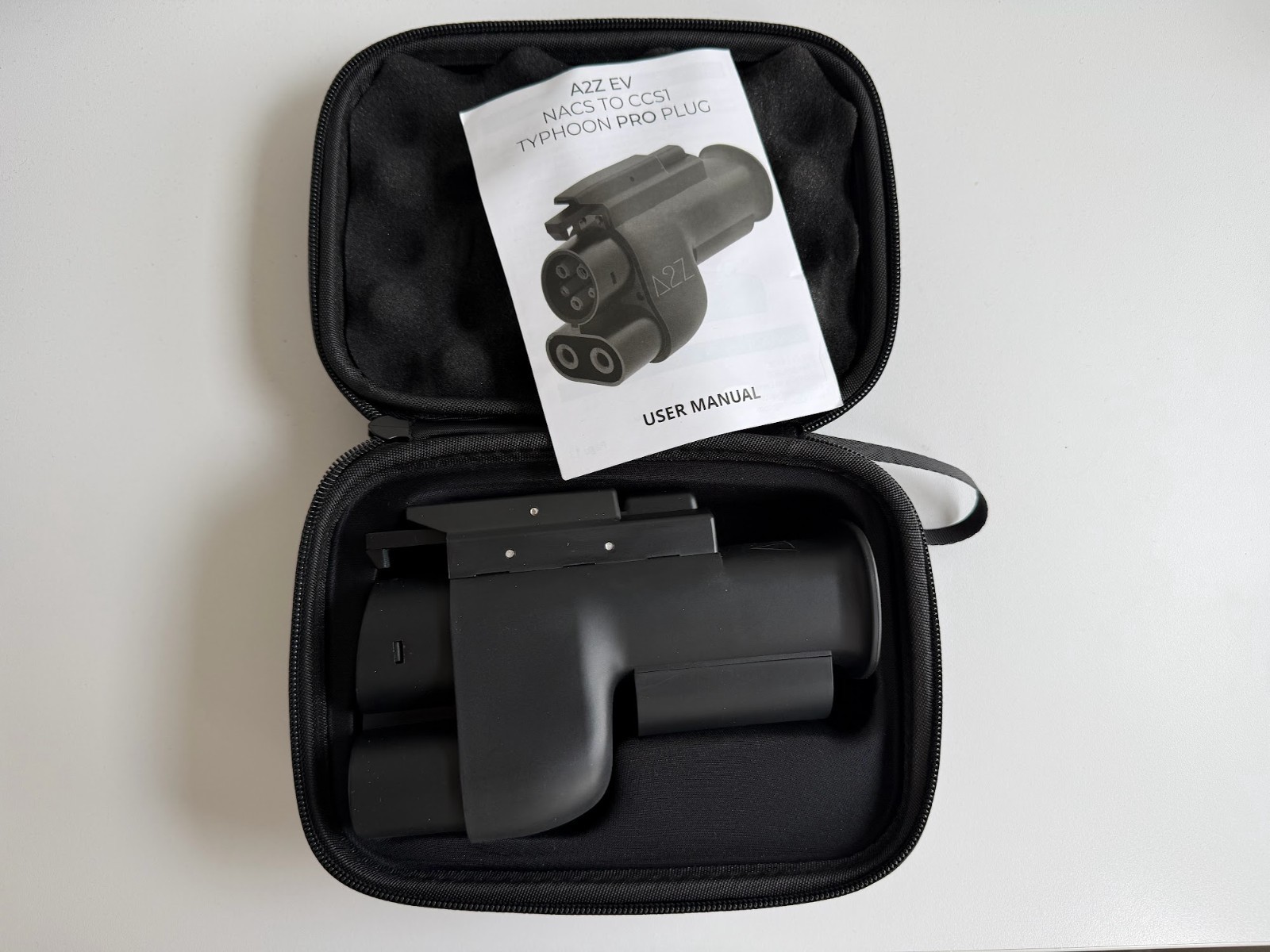 The A2Z Typhoon Pro NACS Tesla to CCS1 Supercharger Adapter allows electric and hybrid vehicle owners to charge their vehicles at Tesla Supercharger stations. Designed for use with Ford, Chevy, Rivian, Volvo, Polestar, and other EV vehicles with the CCS1 or J1772 charge port, this adapter ensures compatibility and efficient charging. A2Z's leading manufacturing expertise in charger accessories ensures a reliable solution for those looking to charge their electric or hybrid vehicles at Tesla Supercharger stations. This item has been lightly used and kept in perfect working condition.