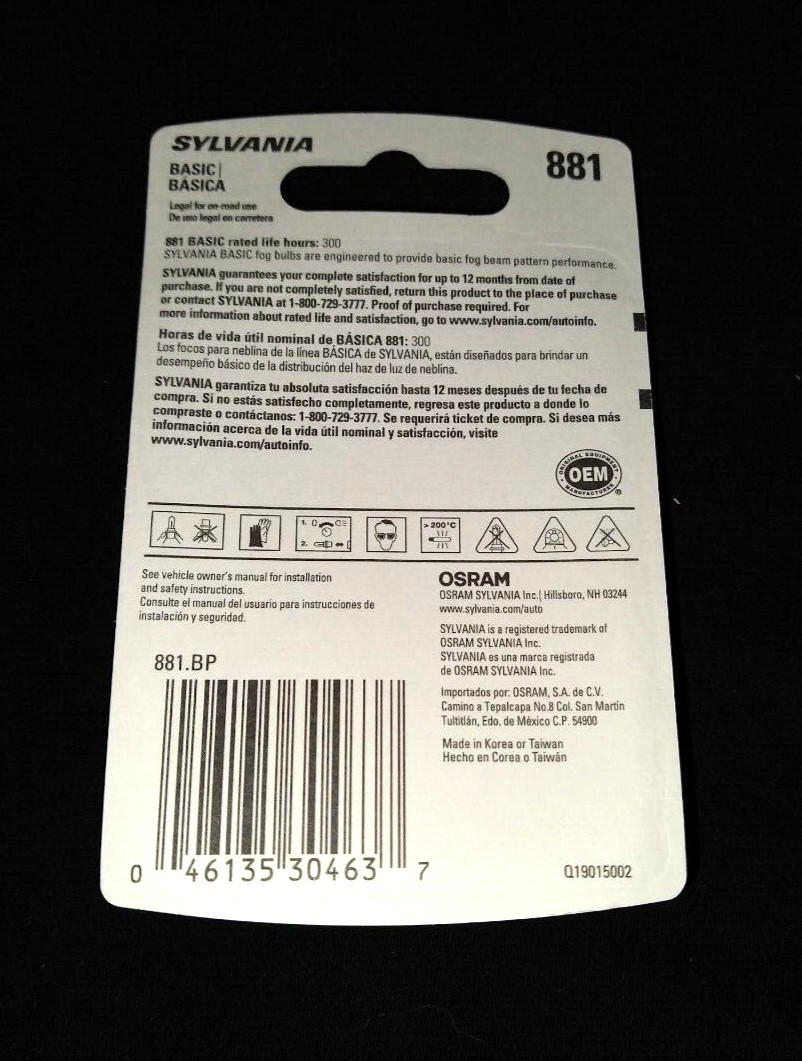 **GARAGE SALE!** **This is a New Sylvania Bulb. These are Brand New, Unopened. These are Basic replacement bulbs. No issues with DOT. These are 881 type.** **Please confirm fitment so as not to waste your time and money. I will try to answer emails within 24 hours. Thank you for looking!** **Shipping will be USPS, UPS or FEDEX at my discretion. I can only ship once or twice a week so if you are in a rush you may want to look for other options. Please see the shipping calculator for the cost.** **Returns accepted within 14 days. Return shipping paid by the buyer. Refunds will be made by Paypal. Returned items will be verified before refunds given.**