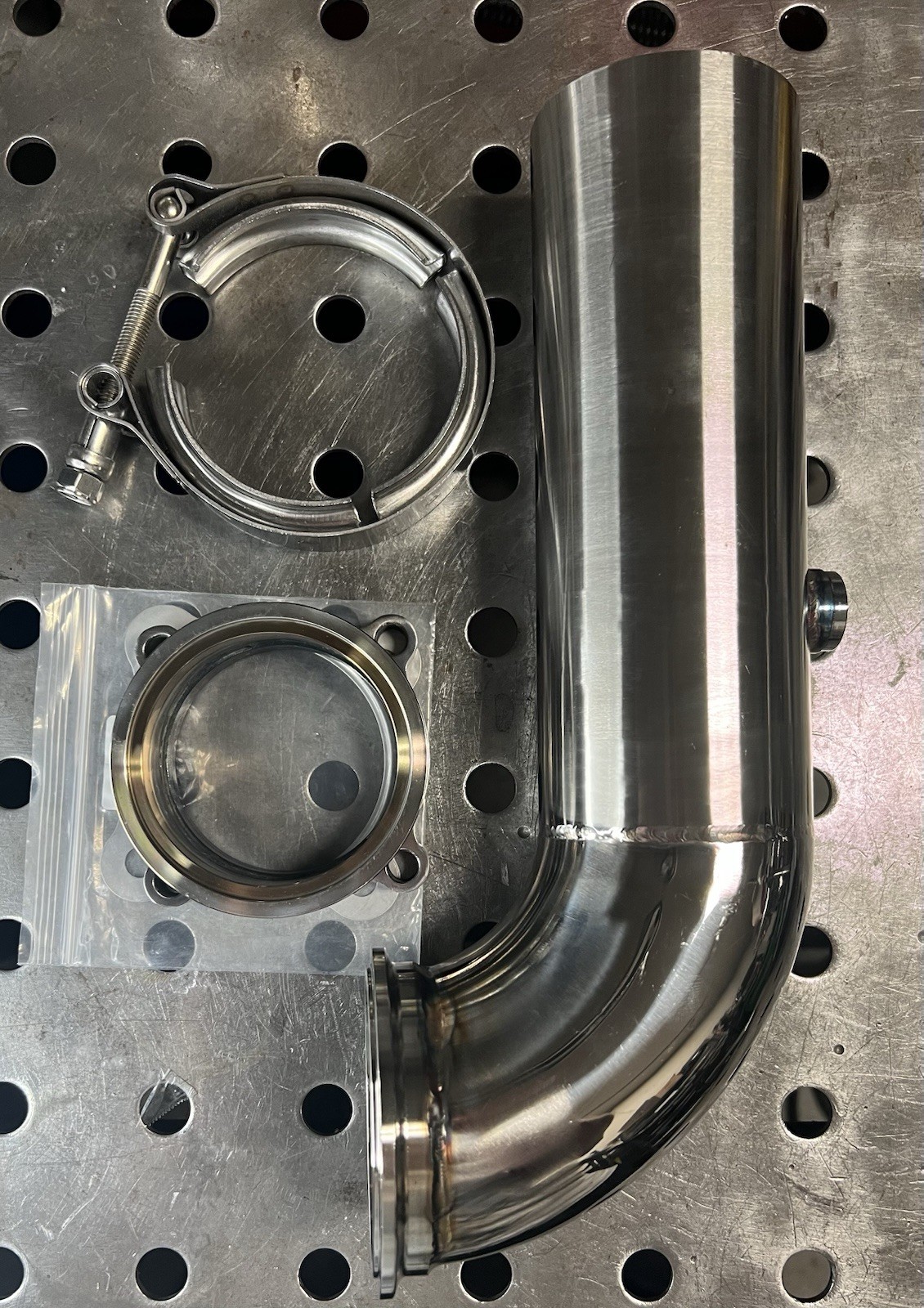 Custom Tig welded stainless steel 3” down/up pipe with O2 sensor Bung also comes with v band clamp. Fits.GT30 GT35. Intended for custom applications please look at all pictures for measurements and fitment.this is a custom performance part it’s your responsibility for measuring and making sure everything works for your build no returns accepted. Thanks for looking, check out my other items ask for custom products.off road use only Installation instruction not included, professional installation are highly recommend