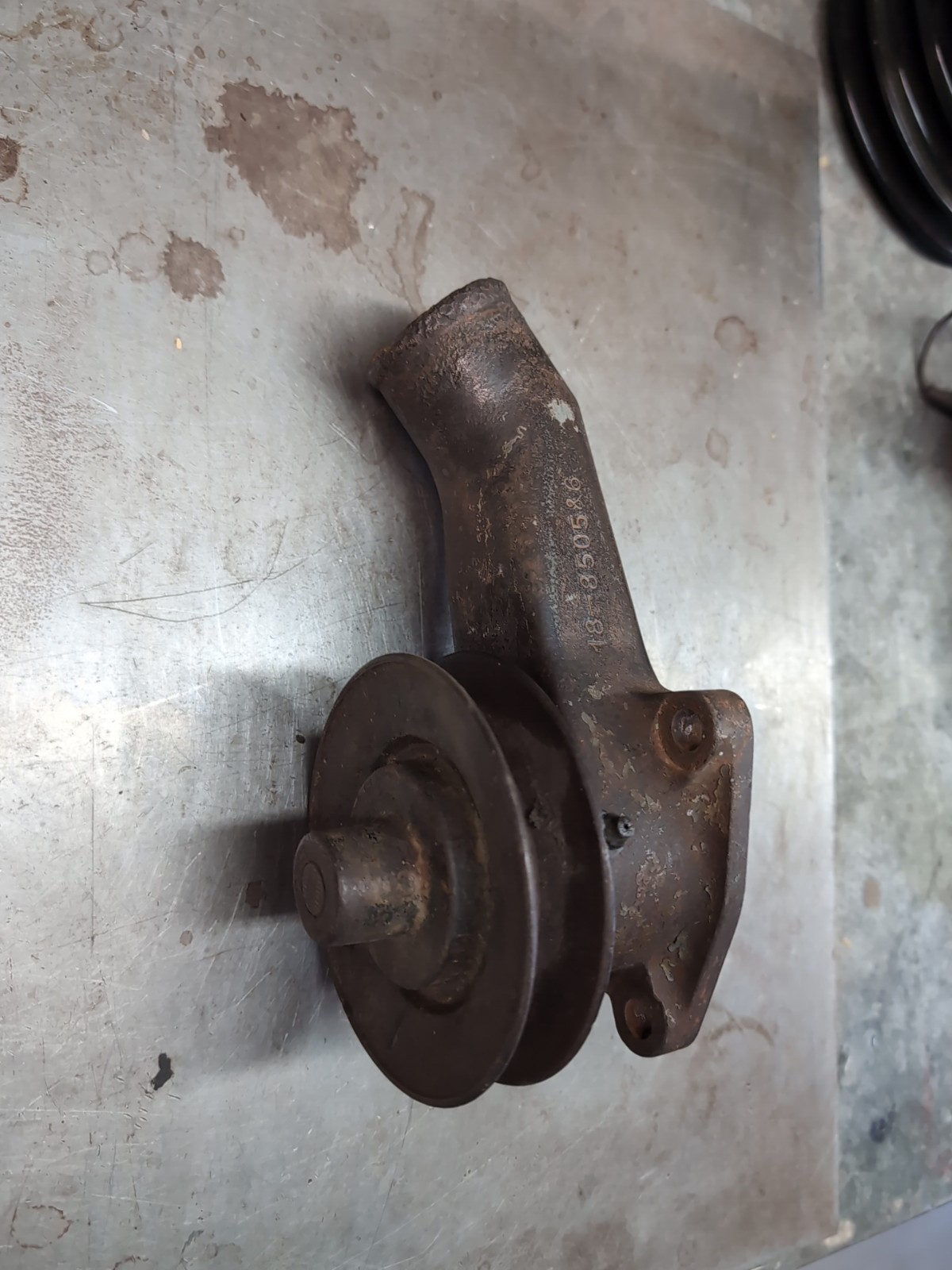 Used Early Ford V8 tall water pump. Has water damage on the inside, pump is locked up. Needs rebuilt and maybe required extra machine work to rebuild it Hard to find early 1932 part Overall, the outside housing is nice.