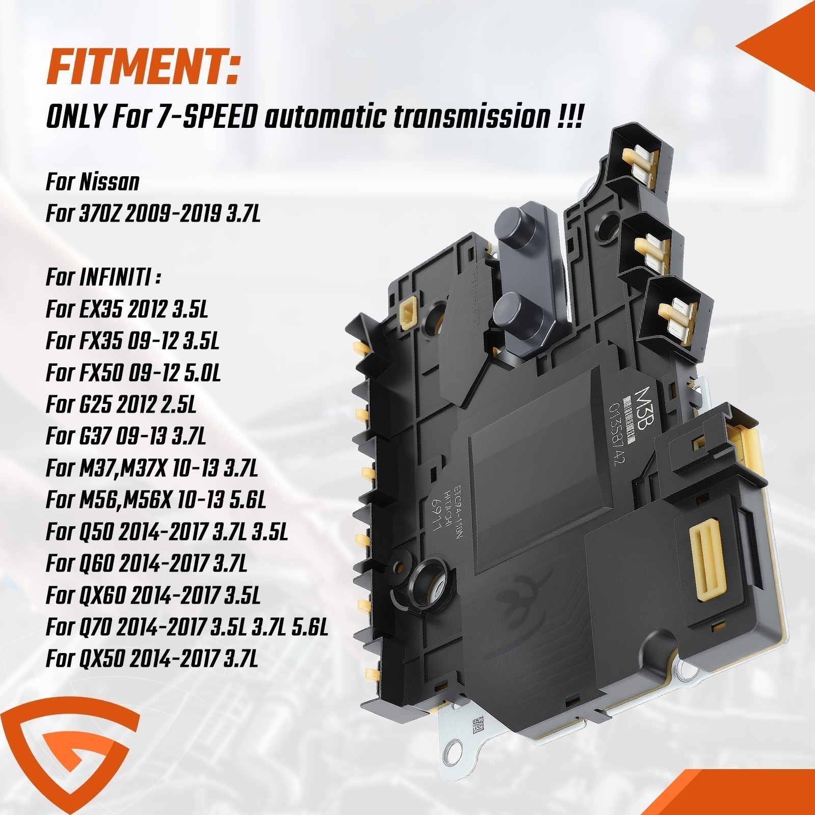 **Part Number:** **RE7R01A JR710E JR711** **Condition: 100% Tested** **Fitment:** **ONLY For 7-SPEED automatic transmission !!!** **For INFINITI :** **EX35 2012 3.5L** **FX35 09-12 3.5L** **FX50 09-12 5.0L** **G25 2012 2.5L** **G37 09-13 3.7L** **M37,M37X 10-13 3.7L** **M56,M56X 10-13 5.6L** **Q50 2014-2017 3.7L 3.5L** **Q60 2014-2017 3.7L** **QX60 2014-2017 3.5L** **Q70 2014-2017 3.5L 3.7L 5.6L** **QX50 2014-2017 3.7L**