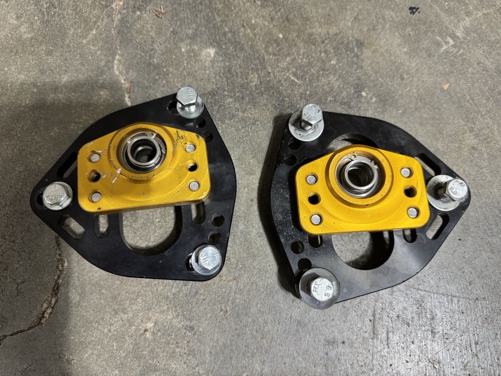 Pair of front camber plates for 1982-1986 Toyota Celica Supra MA61 from Techno Toy Tuning. It has roughly 4,000 road miles and a few seasons of autox on them. Work perfectly fine still. Will only ship to the lower 48 states.
