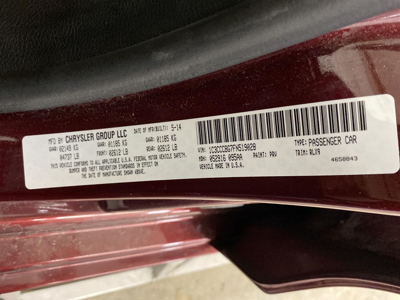 - VIN #: 1C3CCCBG7FN519028