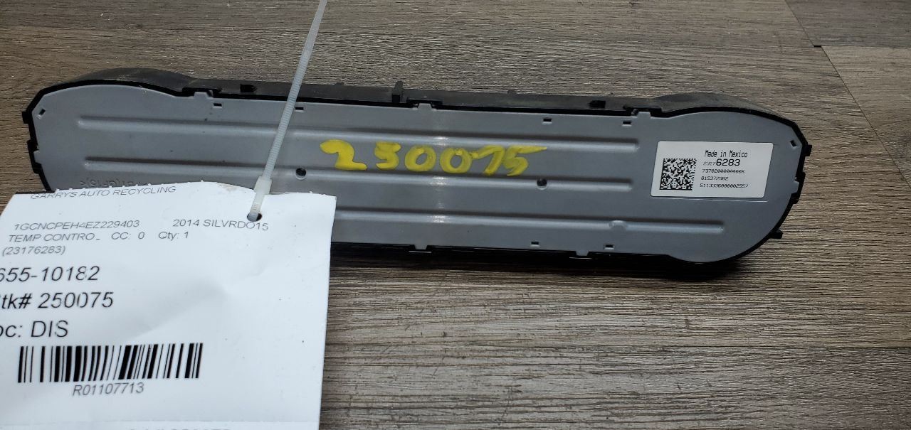 Description USED ITEM - MAY HAVE LIGHT SCRATCHES OR BLEMISHES FROM BEING A USED ITEM. Donor Vehicle VIN: 1GCNCPEH4EZ229403 Model: SILVRDO15 Year: 2014 Mileage: 159000 (0 = not available or unknown) Stock Number: 250075 Store Number: 1 Part Detail Part Grade: A Part Category: U Part Placement: Notes: (23176283) 182026 This part will fit these makes and models with these options SIERRA 1500 PICKUP 17 w/o rear defrost; ID 23486621 SIERRA 1500 PICKUP 17 w/o rear defrost; ID 84199205 SIERRA 1500 PICKUP 18 opt C67, ID 84164475 SIERRA 1500 PICKUP 18 opt C67, ID 84199205 SIERRA 1500 PICKUP 19 classic style (mirrors mount in window corner), ID 84199205 SIERRA 2500 PICKUP 15-16 single zone AC (opt C67), ID 23176283 SIERRA 2500 PICKUP 16 single zone AC (opt C67), ID 23486621 SIERRA 2500 PICKUP 17 opt C67, ID 23486621 SIERRA 2500 PICKUP 18 opt C67, ID 84164475 SIERRA 2500 PICKUP 18-19 opt C67, ID 84199205 SIERRA 3500 PICKUP 15-16 single zone AC (opt C67), ID 23176283 SIERRA 3500 PICKUP 16 single zone AC (opt C67), ID 23486621 SIERRA 3500 PICKUP 17 opt C67, ID 23486621 SIERRA 3500 PICKUP 18 opt C67, ID 84164475 SIERRA 3500 PICKUP 18-19 opt C67, ID 84199205 SIERRA DENALI 3500 19 ID 84199205 SILVERADO 1500 PICKUP 14 w/o automatic temperature control; ID 23176283 SILVERADO 1500 PICKUP 15 single zone AC (opt C67), ID 23176283 SILVERADO 1500 PICKUP 16 opt C67, ID 23486621 SILVERADO 1500 PICKUP 17 w/o rear defrost; ID 23486621 SILVERADO 1500 PICKUP 17 w/o rear defrost; ID 84199205 SILVERADO 1500 PICKUP 18 opt C67, ID 84164475 SILVERADO 1500 PICKUP 18 opt C67, ID 84199205 SILVERADO 1500 PICKUP 19 classic style (mirrors mount in window corner), ID 84199205 SILVERADO 2500 PICKUP 15 single zone AC (opt C67), ID 23176283 SILVERADO 2500 PICKUP 16-17 opt C67, ID 23486621 SILVERADO 2500 PICKUP 18-19 opt C67, ID 84164475 SILVERADO 2500 PICKUP 18-19 opt C67, ID 84199205 SILVERADO 3500 PICKUP 15 single zone AC (opt C67), ID 23176283 SILVERADO 3500 PICKUP 16-17 opt C67, ID 23486621 SILVERADO 3500 PICKUP 18-19 opt C67, ID 84164475 SILVERADO 3500 PICKUP 18-19 opt C67, ID 84199205 WARRANTY / GUARANTEE Most parts we sell come with a **90 day money back guarantee** unless otherwise stated.The 30 day period starts when you take possession of the part. No labor warranty is provided. Engines and transmissions have a 6 month part warrantyIn the event a part sold with a warranty fails to operate within the warranty period we will replace the part(s) with a functionally equivalent part (if available) or refund for the parts purchase price, at our option. SHIPPING NOTESABOUT USHELP Garry's Auto Recycling ships to US addresses within the 48 states only via UPS Ground or USPS First Class. # **_FREIGHT:_ITEMS WITH FREE FREIGHT SHIPPING (BIG ITEMS - like engines/transmissions/doors/hoods) APPLIES TO BUSINESS ADDRESS DELIVERY THAT CAN TAKE AN 18-WHEELER. RESIDENTIAL SHIPMENT WILL BE AT EXTRA COST TO THE BUYER OF THE DIFFERENCE IN COST OR SHIPPED TO THE CLOSEST FREIGHT TERMINAL FOR CUSTOMER PICK UP.** No Alaska, Hawaii, Puerto Rico, APO, FPO or PO Box please.Pick up at our facilities is available. Please message us prior to your purchase to arrange pick up. Items will be shipped within 1-2 days of purchase. Please allow 3-10 days for delivery. Most areas in the US are within 3-5 days. No expedited/overnight shipping is available. If an item arrives damaged, please contact us via Message/Email/Phone within 24 hours for instructions. Please include any photos you may have taken of the damage and please note if there was damage on the shipping package when received. If you have a question about a part please contact us **BEFORE** purchasing. Our main contact method is by Messages. We try to answer all messages within 24 hours. Near the buy now button under our user name there is a contact seller link. **ALL PARTS ARE USED UNLESS OTHERWISE STATED** \- Please remember these are used parts so they will have normal wear/tear on them like light scratches or blemishes. **Parts Grading.** A standard code system is used to communicate the condition and quality of a part between automotive recyclers, automotive repair shops, and insurers. Knowing how these codes are used will help you understand whether the part meets your expectations before you buy it and what you can expect from the part when you receive it. **A Grade**\- The highest quality part. It is of low miles and/or exceptional condition for its age.**B Grade**\- The second level quality part. It is of average miles and normal condition for its age.**C Grade**\- The third level quality part. It has high miles and/or light damage.**No Grade**\- A part that has not yet been graded.