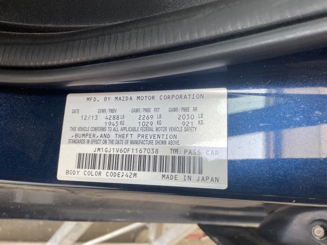 - VIN #: JM1GJ1V60F1167038