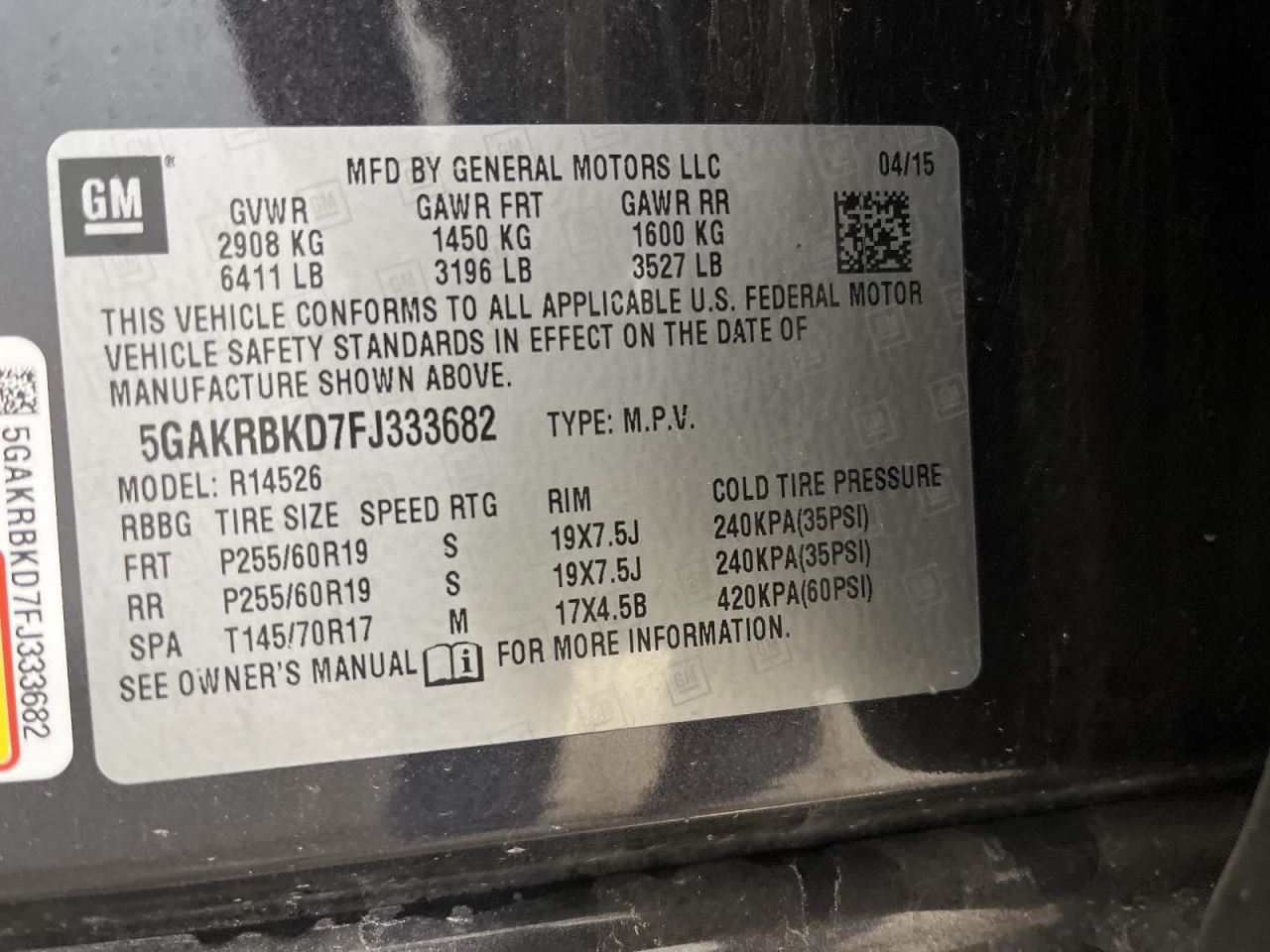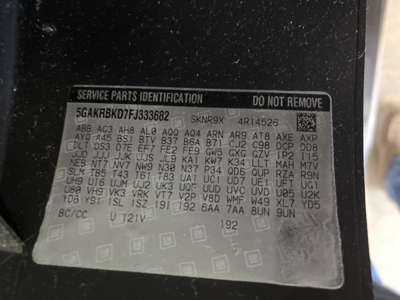 - VIN #: 5GAKRBKD7FJ333682