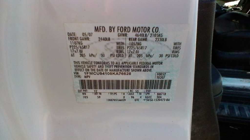 - VIN #: 1FMCU94108KA76628