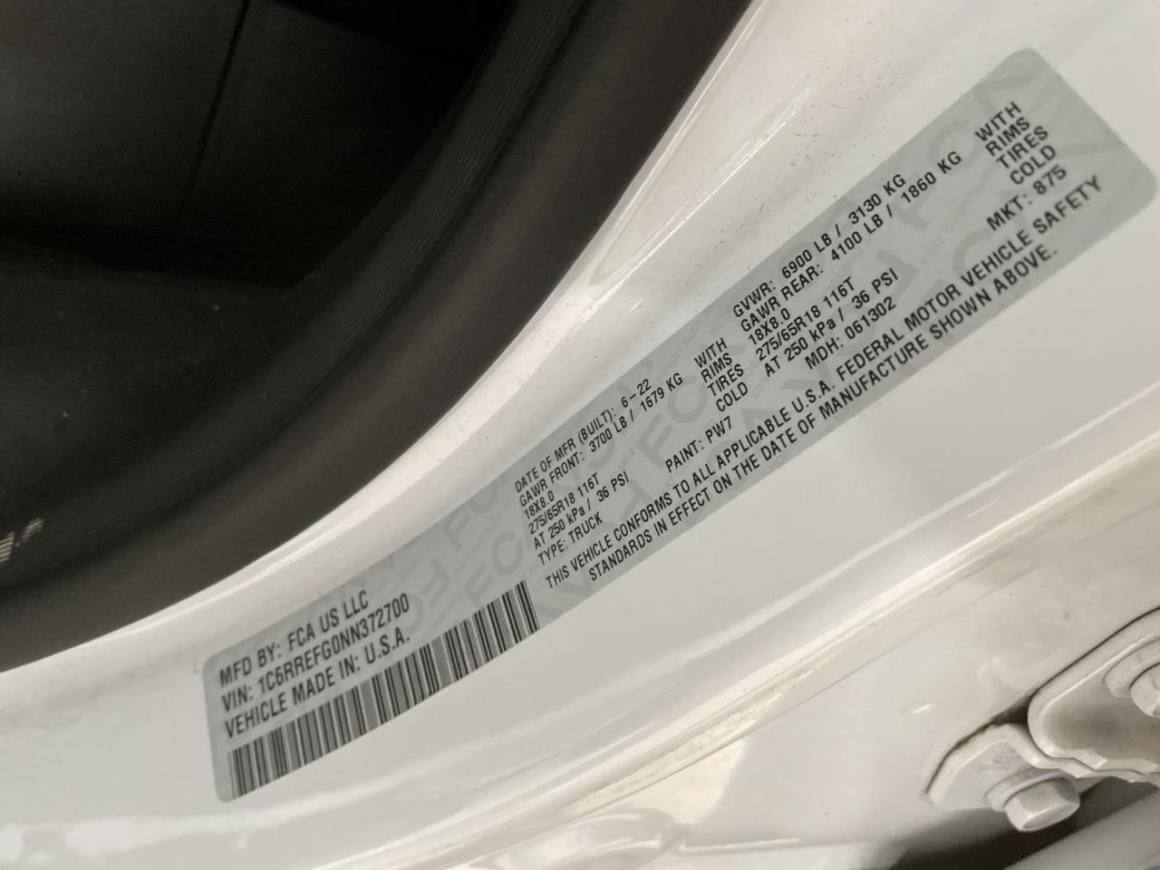 - VIN #: 1C6RREFG0NN372700