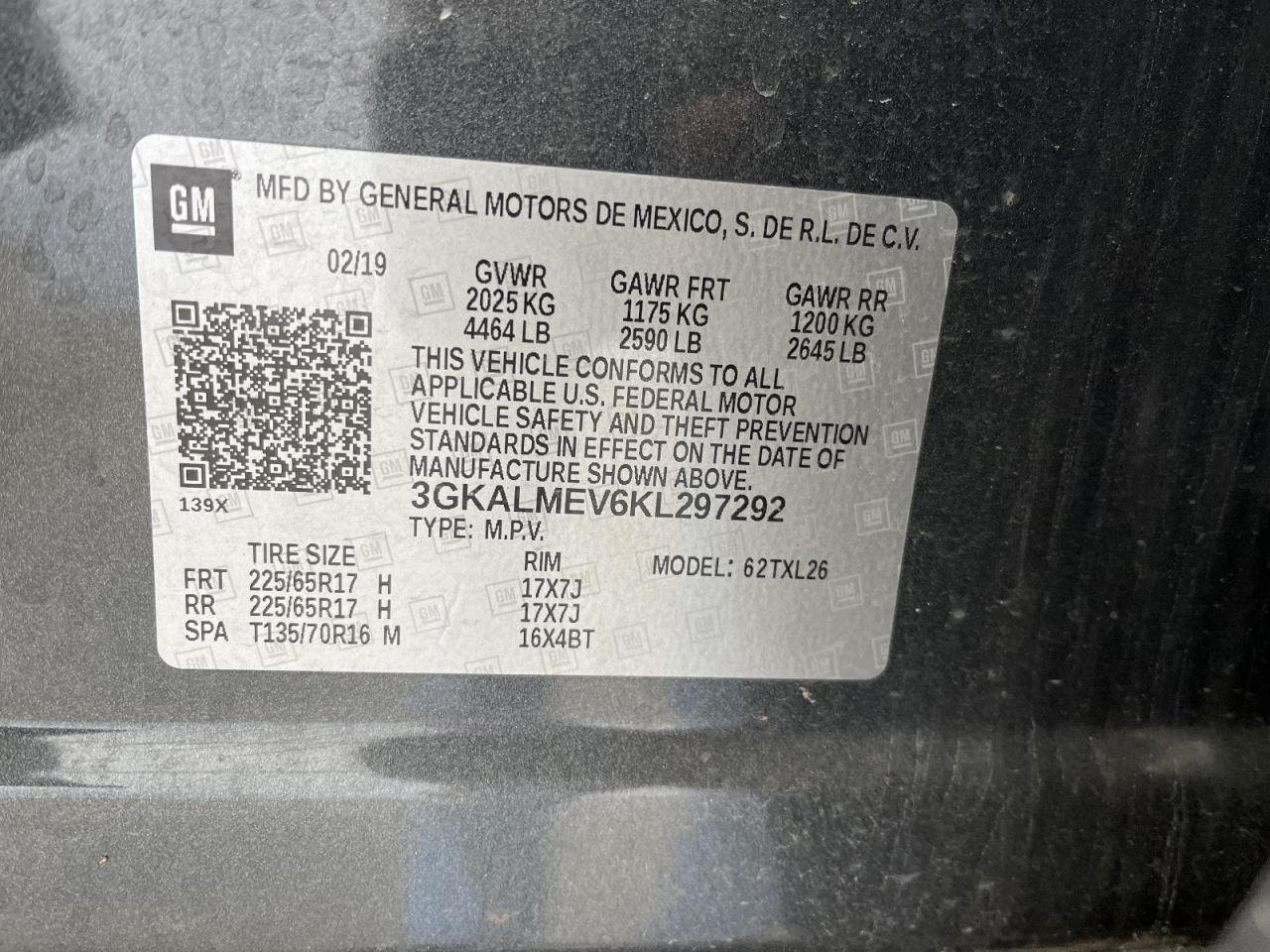 - VIN #: 3GKALMEV6KL297292