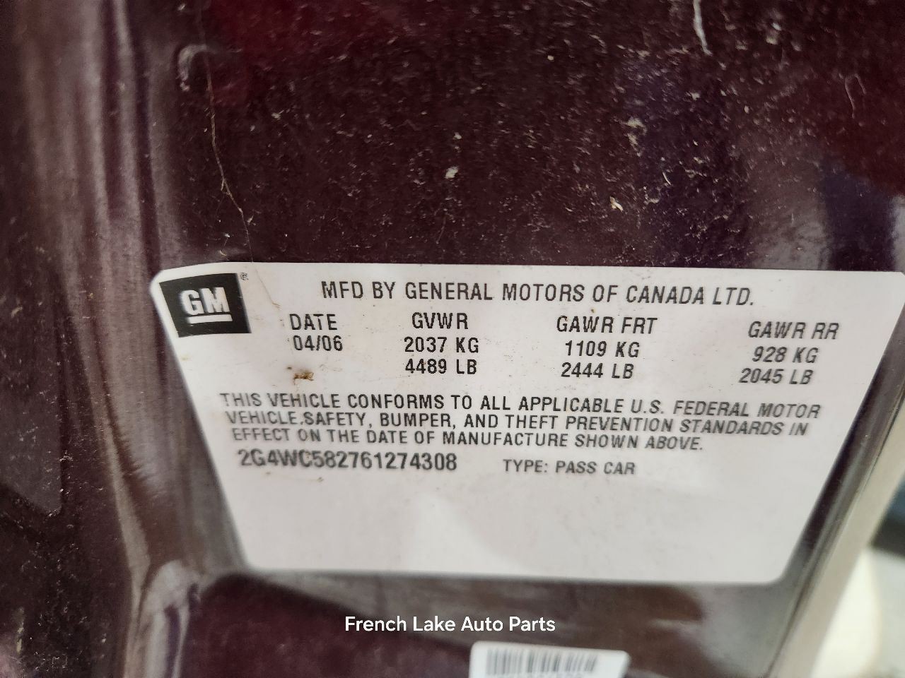 - VIN #: 2G4WC582761274308