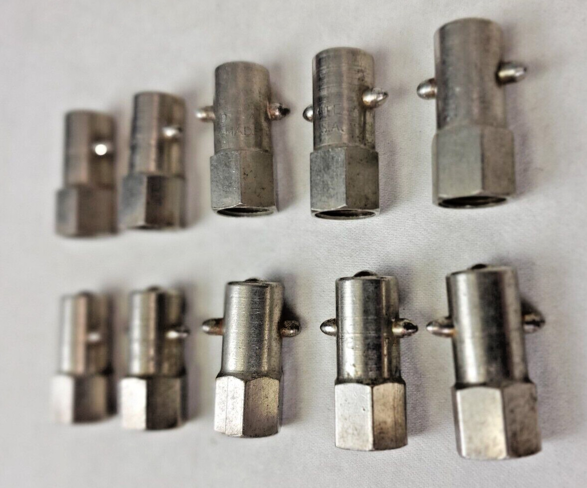 Ten (10) Vintage Straight Alemite Female Grease Fittings NOS Near Mint