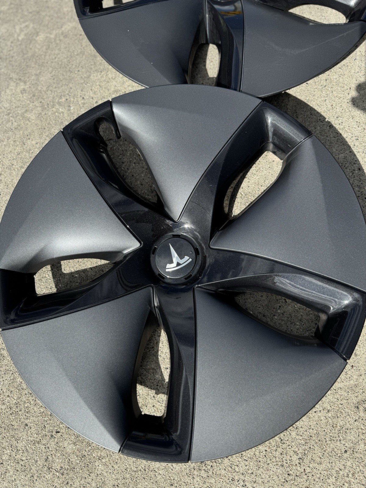 Tesla Model Y 19” Gemini Wheel Covers Set of 4 OEM Hubcaps Matte Gray 1044231-B