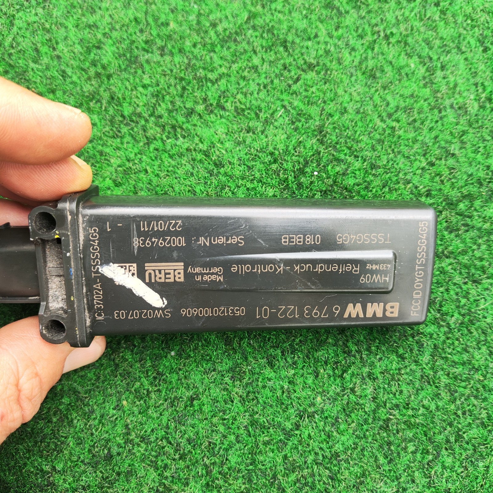 Fast seller ★ ★ ★ ★ ★ * * * # Tire Pressure Monitor System Antenna 6 793 122-01 TPMS Unit for BMW 328i 335i M3 2011 2012 3 series Sedan Coupe Convertible Control Sensor Module OEM 👉 Donor vehicle: 2011 BMW 328i xDrive E90, 3.0L L6, A/T, AWD; **VIN: WBAPH7G5XBNN07296** ✅ The antenna has been tested and is in excellent working condition. Watch the video to see how we test each TPMS antenna. Before purchasing, make sure your car is listed in the **COMPATIBILITY CHART** to avoid problems during installation. ✨ We know BMW inside and out, and we're always happy to help. Feel free to reach out with any questions! Mira el video para ver cómo probamos cada antena TPMS. Antes de comprar, asegúrate de que tu vehÃculo esté listado en la **TABLA DE COMPATIBILIDAD** para evitar problemas durante la instalación. ✨ Conocemos BMW a la perfección y siempre estamos felices de ayudar. No dudes en ponerte en contacto con nosotros si tienes alguna pregunta! Manufacturer Part Number: 6 793 122-01, 679312201, 6-793-122, 6793122 🚀 Super fast delivery We ship the vast majority of orders placed during business hours within **6 hours** after payment. Enviamos la gran mayorÃa de los pedidos realizados durante el horario comercial dentro de las **6 horas** posteriores al pago. 👌 Buyer Protection - 30 day warranty & free returns!\*\* - The part in the pictures are the actual part you will be receiving. - After purchase, you are allowed to install and test the module in your vehicle. The warranty remains valid after installation. Not all sellers offer this option. - ¡GarantÃa de 30 dÃas y devoluciones gratuitas!\*\* - La pieza que aparece en las imágenes es la pieza real que recibirás. - Después de la compra, se le permite instalar y probar el módulo en su vehÃculo. La garantÃa sigue siendo válida después de la instalación. No todos los vendedores ofrecen esta opción. \*\*Return Policy: The item has security seals. If the item is opened and the security seal is broken, the 30-day warranty and free return are not valid. If the security seals have not been broken, you are guaranteed to receive a **100% refund, regardless of the reason for the return**. We do not charge any additional return fees. \*\*PolÃtica de devoluciones: El artÃculo dispone de precintos de seguridad. Si se abre el artÃculo y se rompe el precinto de seguridad, no son válidas la garantÃa de 30 dÃas y la devolución gratuita. Si el artÃculo no está dañado, tiene la garantÃa de recibir un reembolso del 100%, **independientemente del motivo de la devolución**. No cobramos ninguna tarifa de devolución adicional. ## Genuine Original Factory Tire Pressure Monitor System Antenna 6-793-122 for BMW 328i 335i M3 2012 2011 Sedan Coupe Convertible TPMS RDC Unit OEM. BERU 053120100606 SW02.07.03 HW09 433MHz Reifendruck-Kontrolle Made in Germany TSSSG4G5 018BEB 100267912 24/11/10