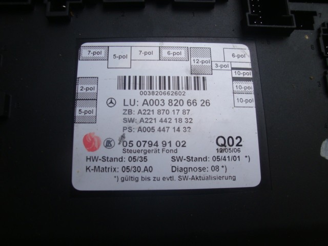TESTED MERCEDES W221 S550 S63 AMG RIGHT OR LEFT REAR DOOR MODULE 0038206626
