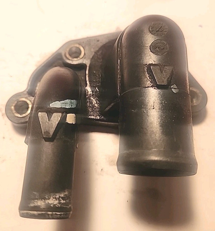 Removed from running 2007 chrysler sebring 2.7 thermostat housing. Has 2 bolts dose not have all 3 bolts. Just have 2 bolts free with the housing. The product is a direct replacement Thermostat Housing for a 2008 Chrysler Sebring 2.7. It is made of plastic and is designed specifically for this model and year. This thermostat housing is a genuine Chrysler part, ensuring a perfect fit and reliable performance for your vehicle. Perfect for those in need of a high-quality replacement part for their Chrysler Sebring 2.7, this product offers a convenient and efficient solution for maintaining proper engine temperature regulation.
