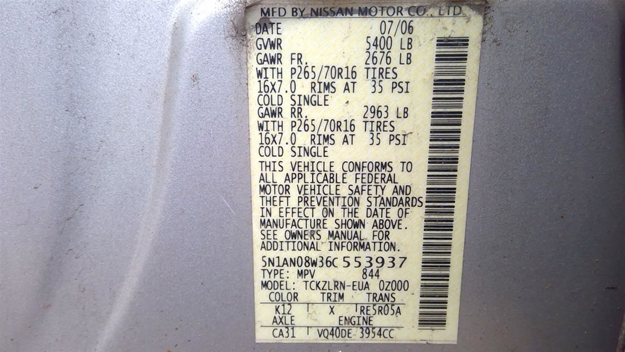- VIN #: 5N1AN08W36C553937