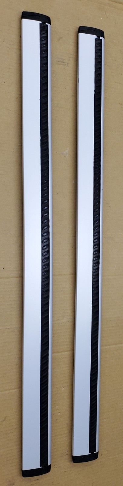 Genuine **Thule AeroBlade 47" load bars (ARB47)** in silver. These aluminum bars are designed to work with Thule roof rack systems and provide a low-profile, aerodynamic design to help reduce wind noise. **Details:** - Thule AeroBlade load bars (pair) - Length: 47 inches - Color: Silver - Material: Aluminum - Model / Part Number: ARB47 **Compatibility Notes:** - Fits Thule **Rapid**-design tower systems, including **430R, 450R, 460R, and 480R** - Also compatible with other Thule towers that accept AeroBlade load bars **Notes:** - Load bars only - Towers, fit kits, locks, and vehicle-specific mounting hardware **not included** - I have additional Thule tower sets and vehicle-specific fit kits available that are not yet listed — **please message me if you’re looking for a specific setup** Ideal as replacement bars or for completing an existing Thule roof rack setup.