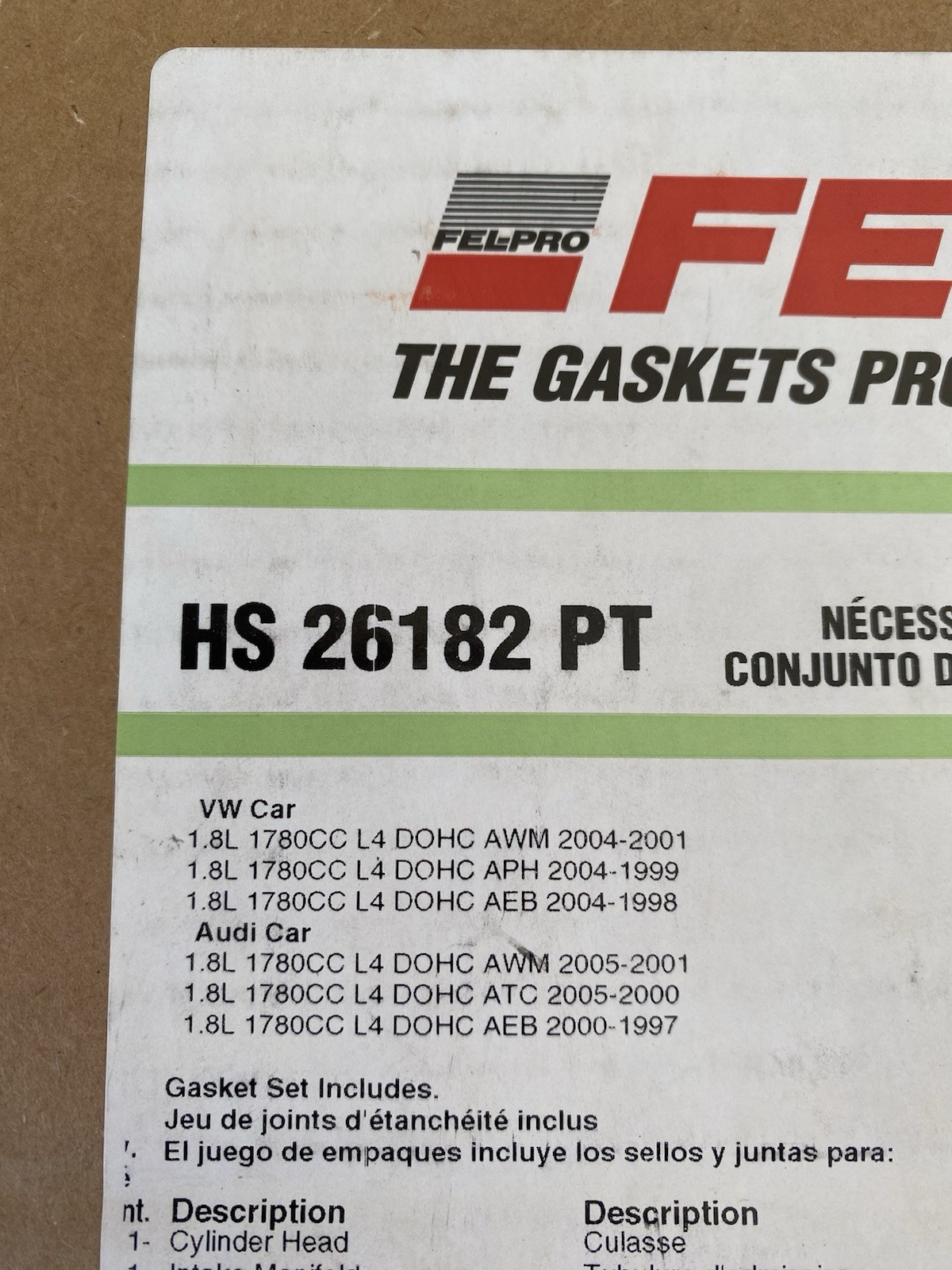 This is a Brand New Never Used Part. Brand: Fel-Pro Type: Head Set Part Number: HS26182 PT This item is Brand New Never Used or Mounted. The factory package may be a little ruff or damaged, but the item is not damaged. Please note that if there is no factory package in the picture, you will not be getting one. The Item was removed from the package for Pictures. The Item may have some Scratches, Rust Spots, Dings, Dust, Dirt on it but still new. Please look at the pictures so you know what you are buying.
