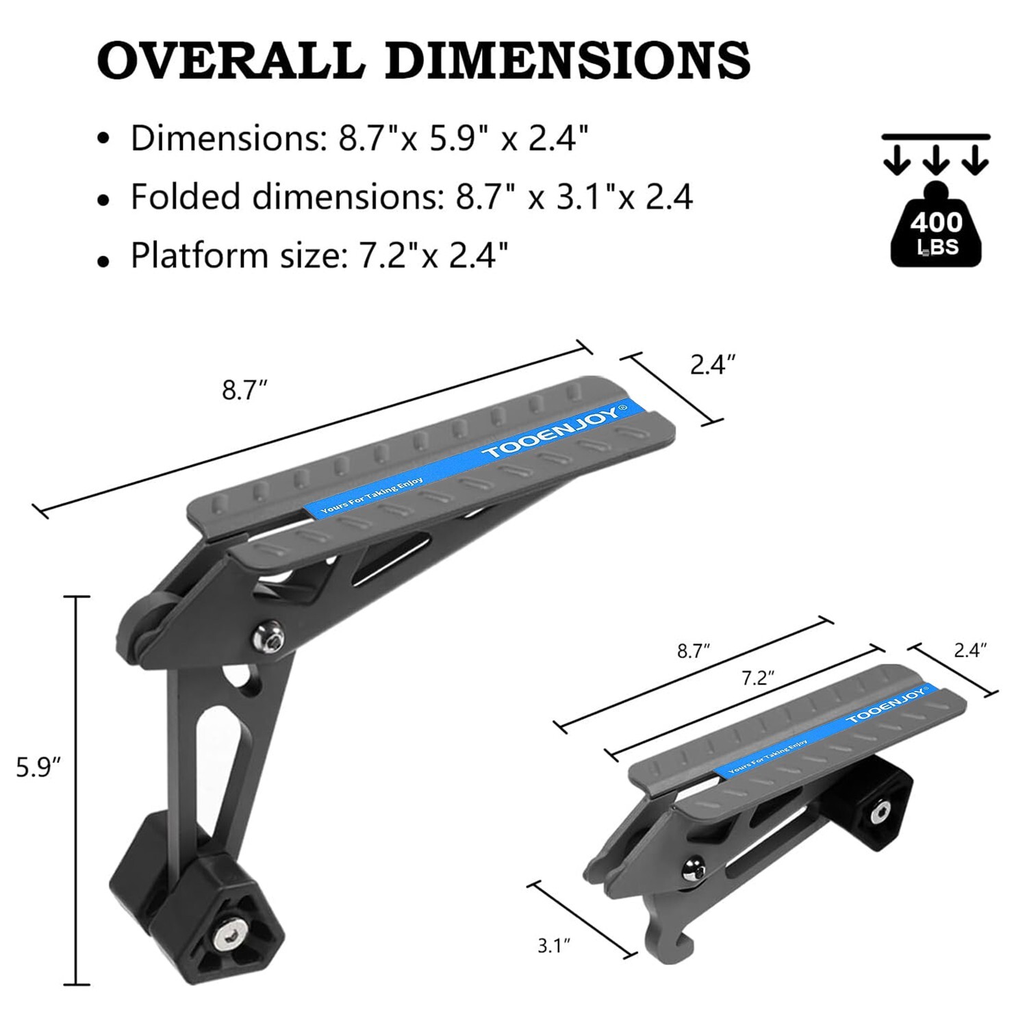 - **【UNIVERSAL FIT】** With adjustable angle structures, it's universal for all sorts of car door latches and compatible with all vehicles in both front and rear doors. The heavy-duty scissor lock structure with bidirectional forces makes the connection very tight and safe. - **【SAFE FOR YOUR VEHICLE】** High-density thickened hexagonal rubber cushion avoids damaging or squeezing your door frame. With a rotatable design, the rubber gear can perfectly fit door frames with different slopes. The large rubber increases the contact surface to ensure you stand on it more stably. - **【EASY TO INSTALL】** Simply hook over the door latch and quickly access the roof. This doorstep outstrip the height of traditional steps by 4-6 inches so that you can complete all operations on the roof at a more comfortable height. - **【SAFE & STABLE】** The extended platform supports both feet to stand on it for maximum stability, 8.66'' L x 2.36'' W. The aircraft-grade aluminum steel construction makes this doorstep lightweight yet strong enough to hold up to 400 lbs. Provides rigid and secure support when you stand on. - **【FOLDABLE & PORTABLE】** This doorstep is foldable and weighs only 1.9lbs. You can store it away in your glove box or spare tire compartment. It's ideal for loading and strapping your cargo box or bag, roof rack or basket, kayak, canoe, bicycle, ski carrier, snowboard, or other accessories, and even washing your vehicle roof!  * * * On Jul 16, 2025 at 23:31:01 PDT, seller added the following information: