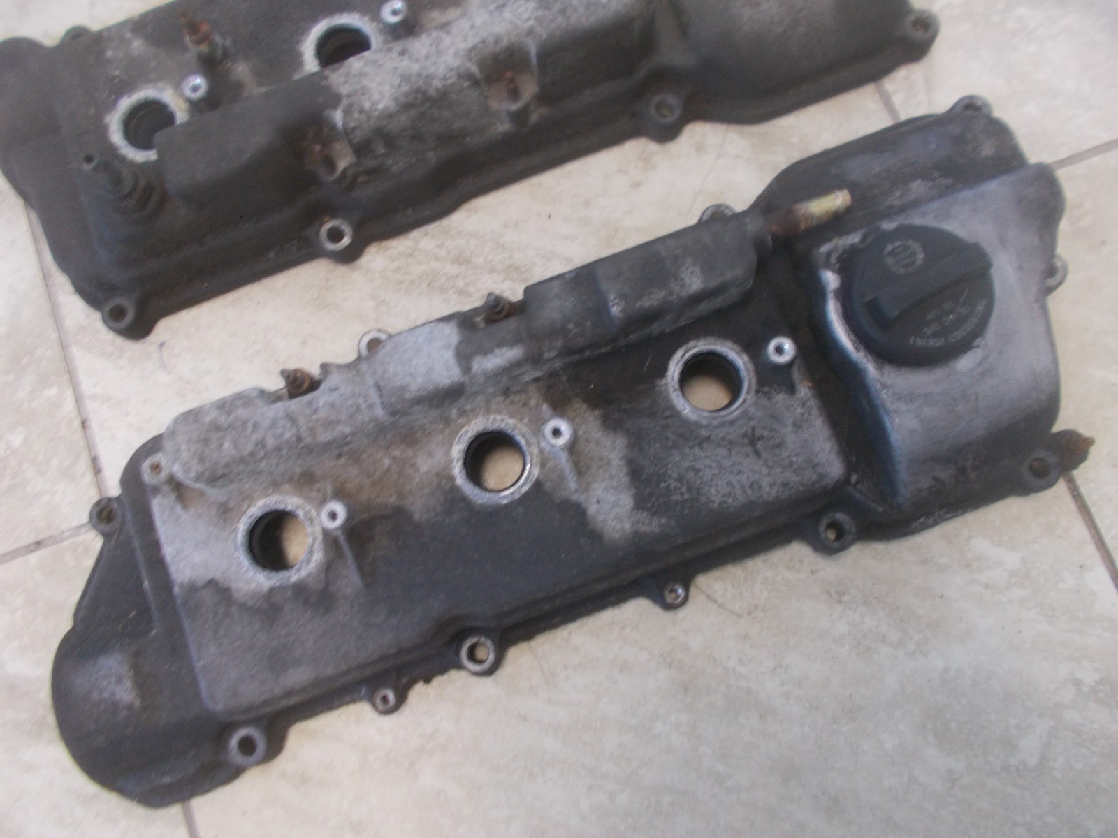 This is a pair of stock used valve covers from a 2003 Toyota Highlander 3.0L V6 engine. They are dirty and greasy. Free shipping in the lower 48 states.
