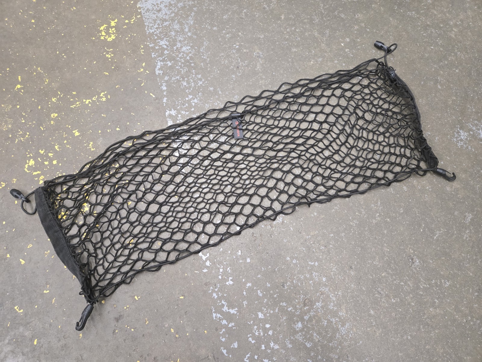 Toyota OEM 2003 2004 2005 2006 2007 2008 Corolla Matrix factory black nylon rear trunk cargo net pouch organizer luggage holder bag in good condition with average wear and two broken mounting clips (that still work the way they are clipped). There is no part number, so please review the pictures to ensure that this is the correct part for your application.