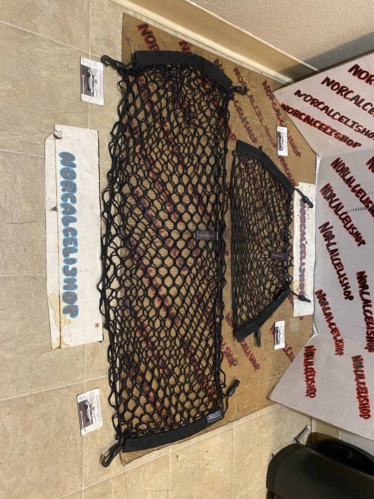 **Toyota trunk nets that are meant for Toyota Matrix 03-08** **However they can also be used with other vehicles for example I have one in my celica** **Helps keep the trunk organized** **Looks great too** **Selling these as a pair** **In good condition and are ready for use** **Just note the smaller net is missing a plastic clip, it can be replaced or used as is** **Any questions message me** **Tambien hablo espanol** **Follow my parts page on instagram: norcalcelishop**