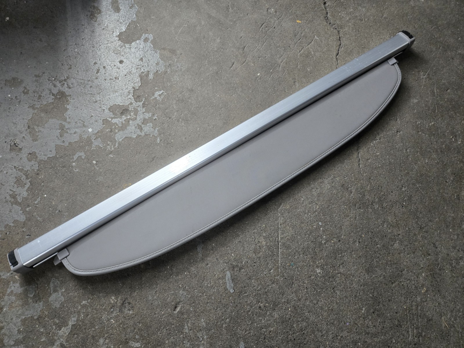 Toyota OEM 2004 2005 2006 2007 2008 2009 Prius dark gray vinyl rear retractable rolling sunshade sun shade cargo cover protector curtain screen in good condition with average wear and some staining on the underside, but no rips, tears, or major flaws. It retracts well. The bar measure 44 1/2" 44.5" across. All of the mounting points are good. There is no mounting hardware included. There is no part number, so please review the pictures to ensure that this is the correct part for your application.