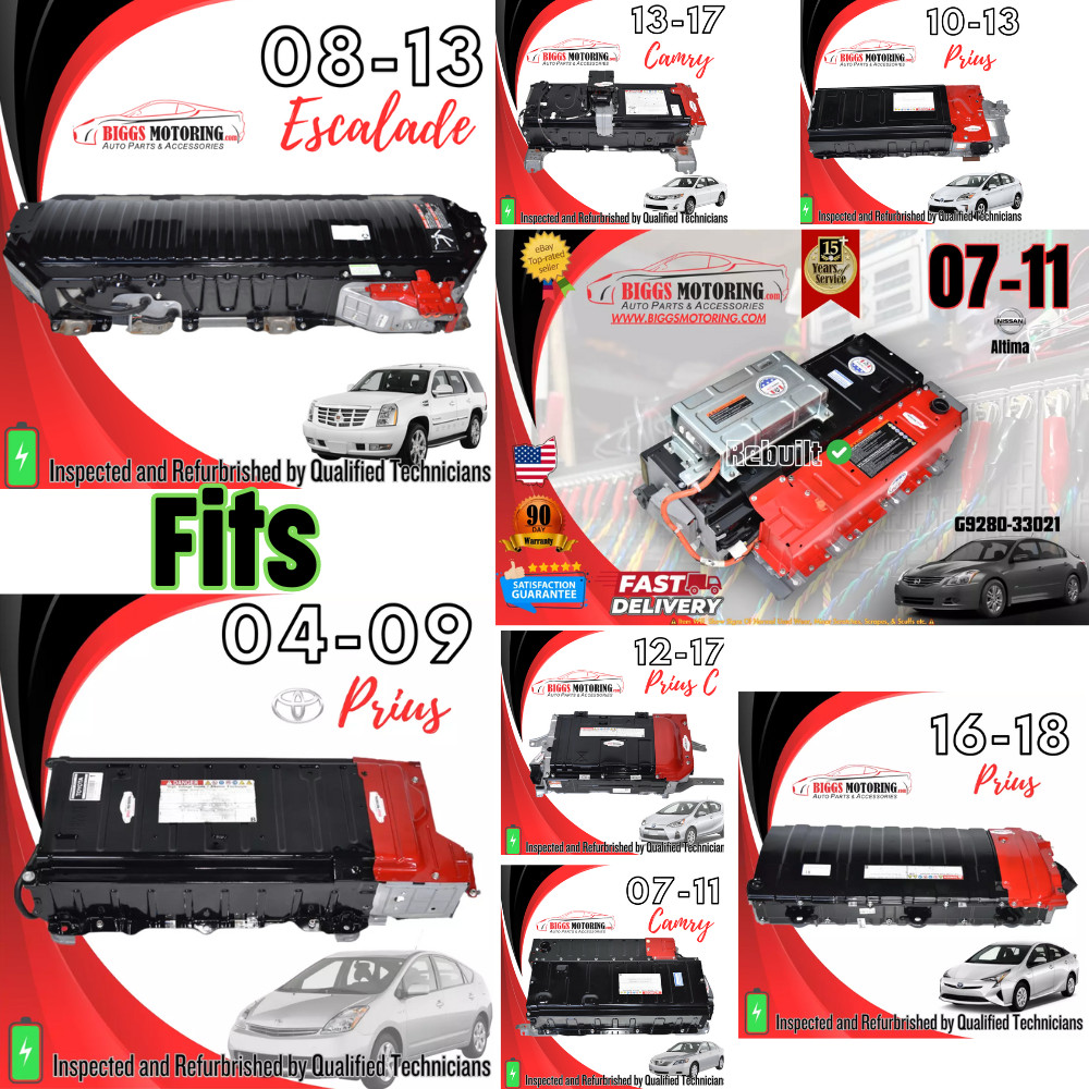 - **Fa****ctory Oem Used Hybrid Battery Cell ...** - ****Item is In Good Working Order, Ready To Be Installed...**** - ****Item Will Show Signs Of Normal Used Wear, Minor Scratches, Scrapes, & Scuffs Etc**** - ****See Pictures For Better Details**** - **365 Days Warranty** **Will Fit:** **2004-2015 Toyota Prius** **2007-2016 Toyota Camry** **2012-2016 toyota Avalon** **2007-2016 Nissan Altima** **2016-2019 Toyota Rav4** **2013-2017 Lexus ES300h** **2011-2019 Lexus CT200h** **2008-2013 Escalade,Yukon and Tahoe.** **365 DAYS WARRANTY on the individual battery cell** ### **Warranty Information** **All Biggs Motoring hybrid batteries include a limited warranty covering performance and workmanship defects.** - **Core must be returned to validate warranty.** - **Failure to return your core will void all warranty coverage.** - **Warranty applies only to batteries installed correctly by a qualified technician.** - **The battery pack and modules must remain unaltered and unopened after installation.** - **Damage caused by improper installation, misuse, or vehicle-related issues is not covered.** - **Warranty begins on the date of delivery.** **By purchasing, you agree to these warranty terms and understand that this warranty applies exclusively to properly installed, reconditioned hybrid battery packs from Biggs Motoring.**